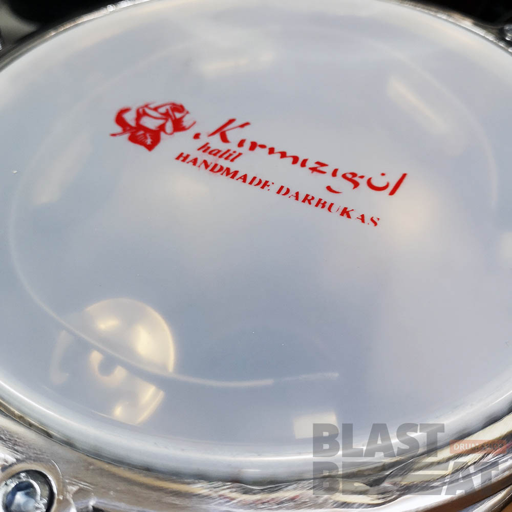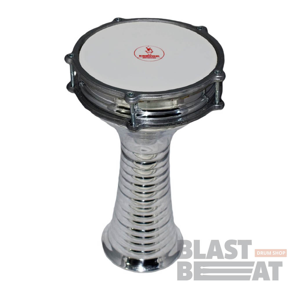 Большая алюминиевая дарбука с рельефным рисунком покрытия и со встроенным тамбурином от бренда Agean (Kirmizigul Percussion).