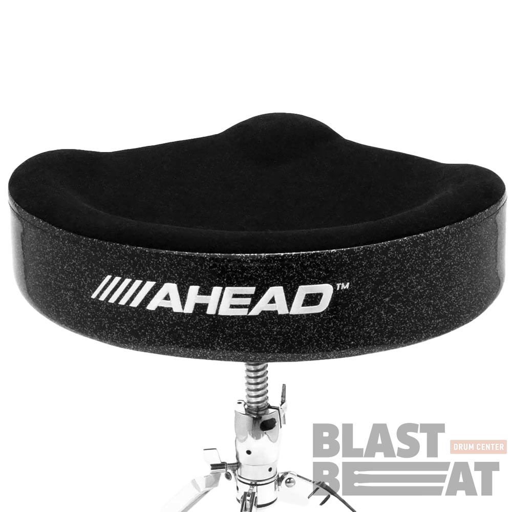 Винтовой велюровый стул барабанщика Ahead AST-BS Saddle Top Drum Throne с мото-сиденьем черного цвета