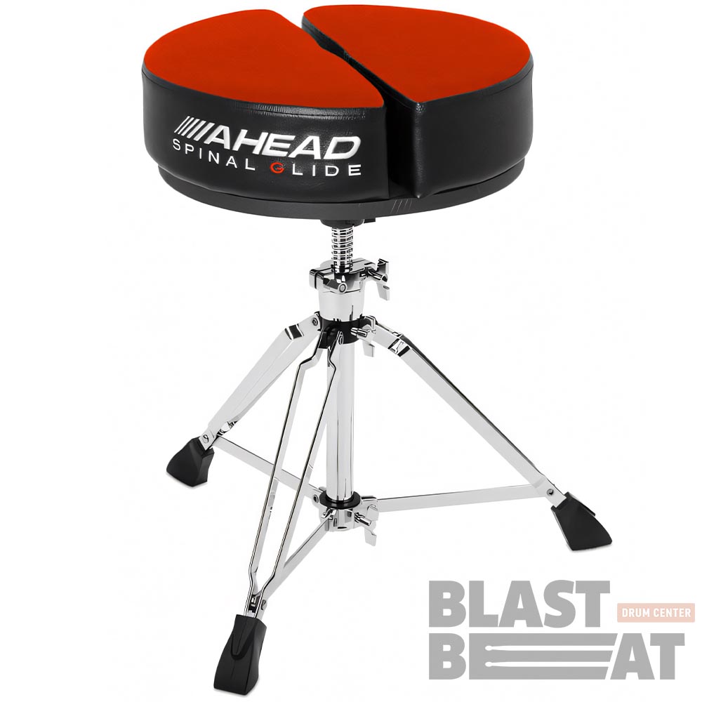 Уникальный винтовой стул барабанщика Ahead SPG-ARTR из серии Spinal Glide с раздельным сиденьем красного цвета для свободного перемещения копчика, особенно подходит для барабанщиков с проблемами спины.
