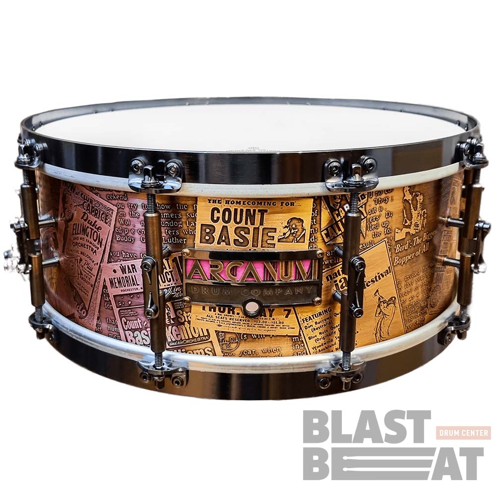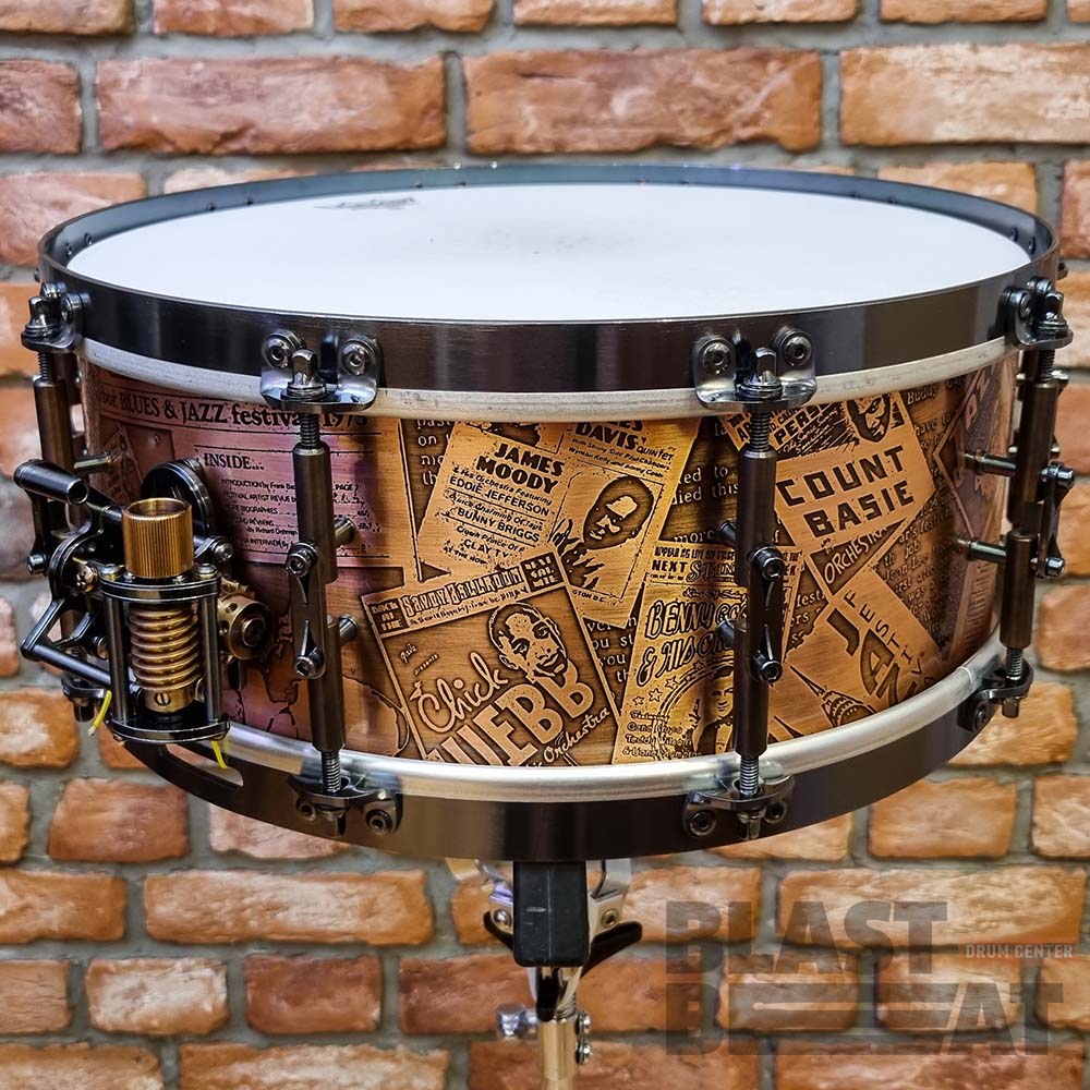 Топовый медный малый барабан 14 на 5,5 дюймов Arcanum серии ARTIST с уникальными авторскими гравировками "Jazz Legends".