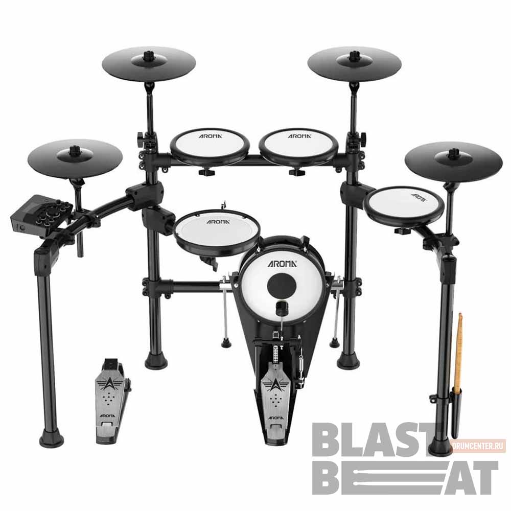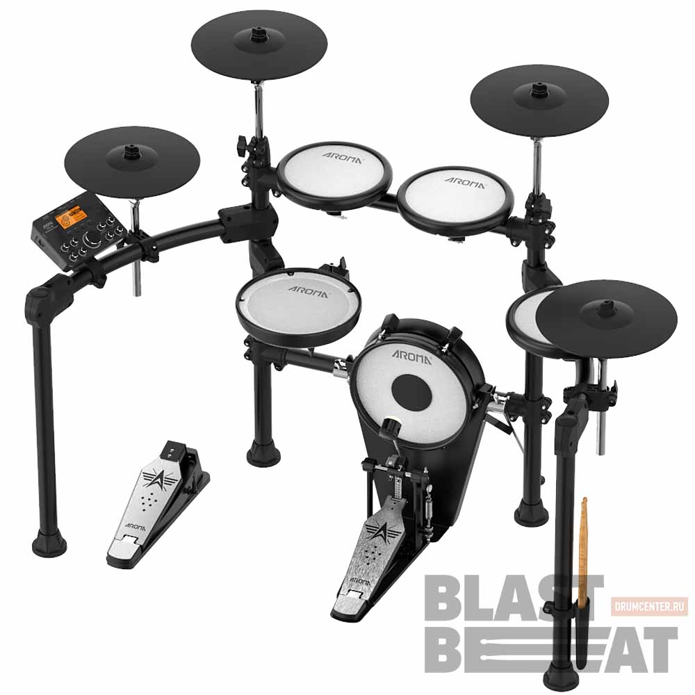 Комплект электронной ударной установки с сетчатыми пэдами с рамой и педалями AROMA TDX-30S All-Mesh.
