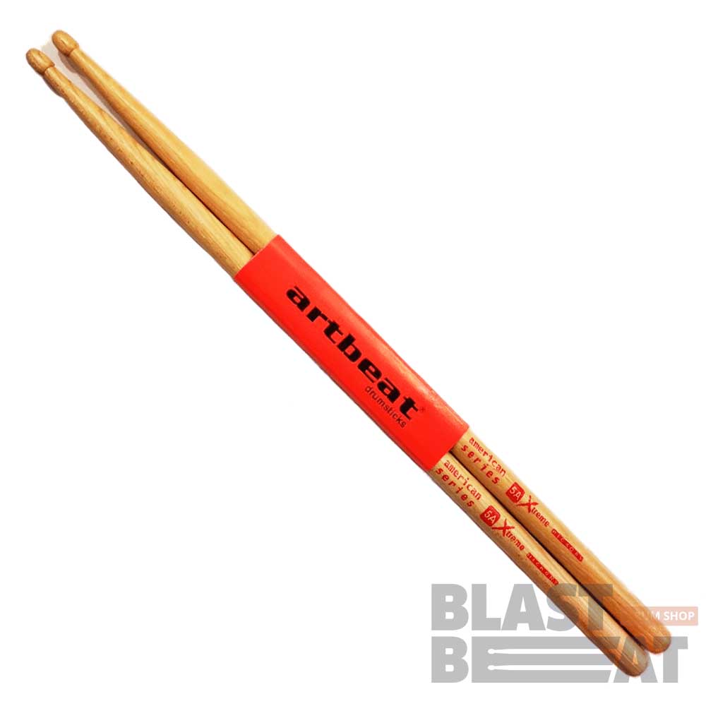 Удлиненные барабанные палочки модели 5A Xtreme American Series от компании Artbeat Drumsticks ARX5AH изготовлены из отборной ореховой древесины hickory (гикори), очень плотного (815 кг/куб.м) и мало подверженного к сгибанию материала, который дарит музыканту более отчетливый звук наряду с долговечностью.