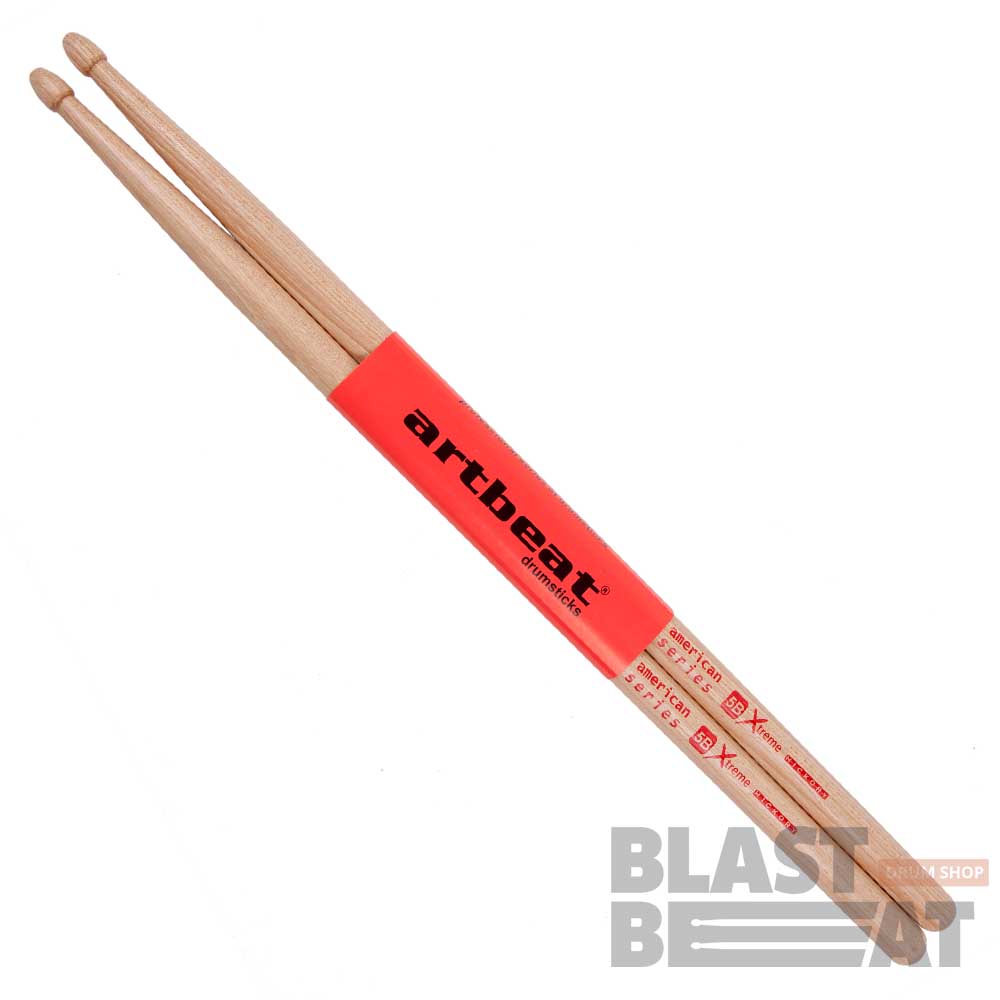 Удлиненные барабанные палочки модели 5B Xtreme American Series от компании Artbeat Drumsticks ARX5BH изготовлены из отборной ореховой древесины hickory (гикори), очень плотного (815 кг/куб.м) и мало подверженного к сгибанию материала, который дарит музыканту более отчетливый звук наряду с долговечностью.