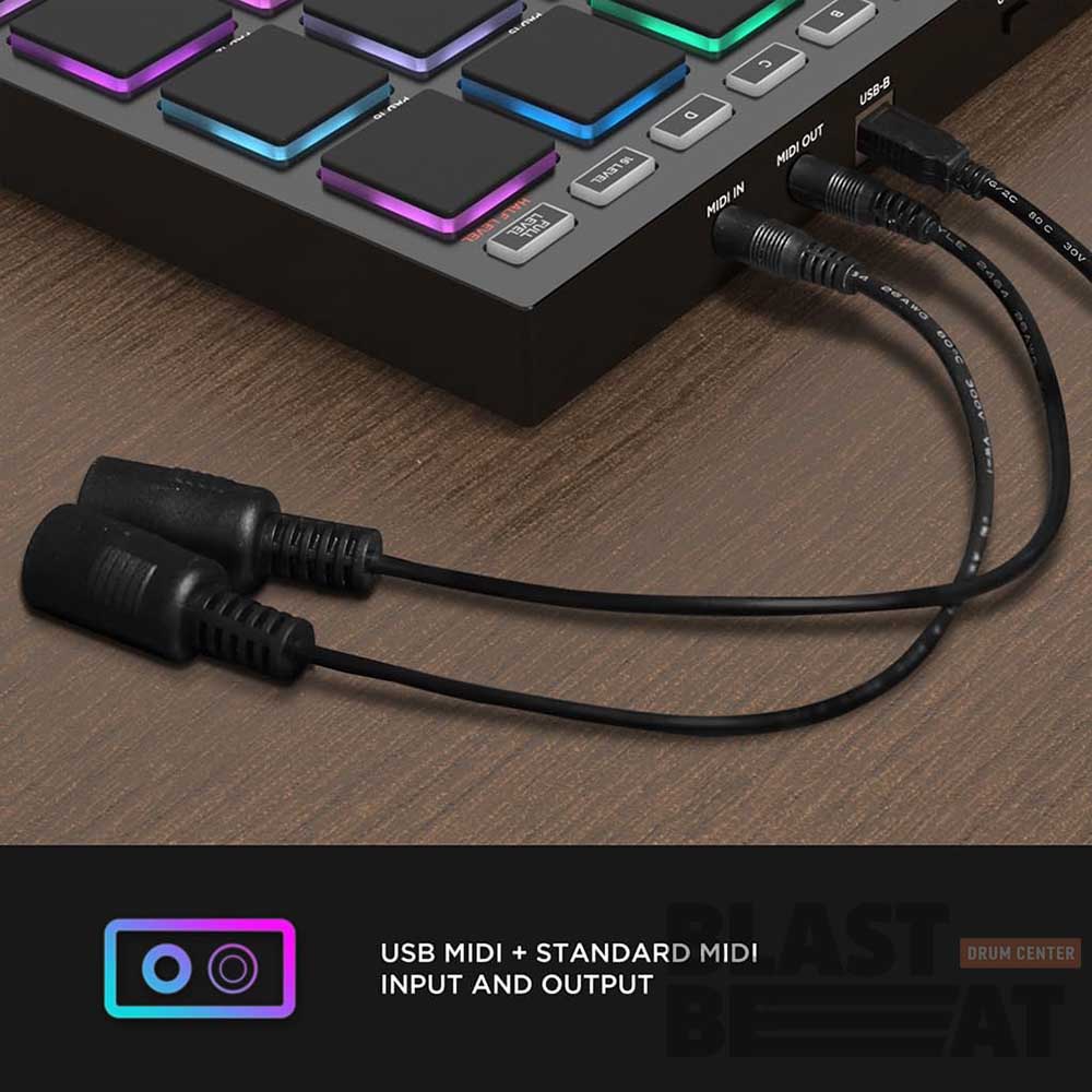 Входящий в комплект USB-кабель и адаптер 1/8"-MIDI упрощают подключение.