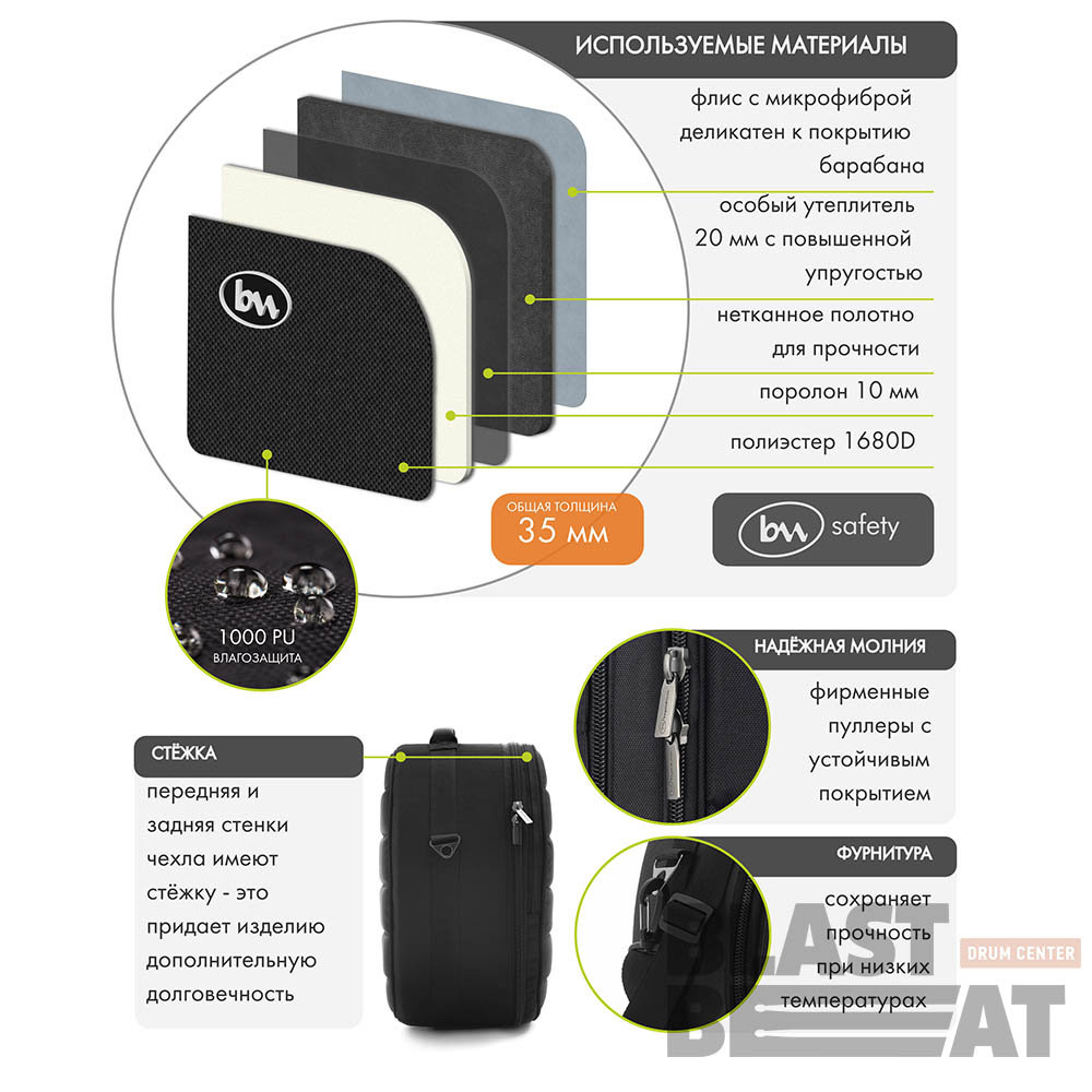 Дизайн, эргономика, набор удобных функций, оптимальные размеры чехла bm для малого барабана без проблем позволят музыканту добраться до концертной площадки, школы, репетиционной базы.