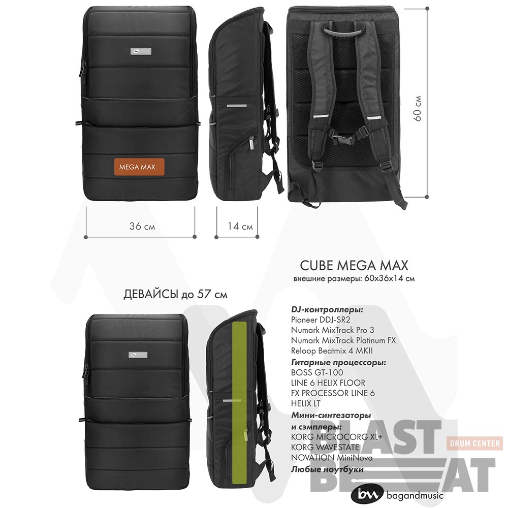 Рюкзак CUBE MEGA MAX от российского бренда bagandmusic - надёжное и продуманное решение для музыкантов, ценящих комфорт и безопасность своих инструментов и гаджетов.