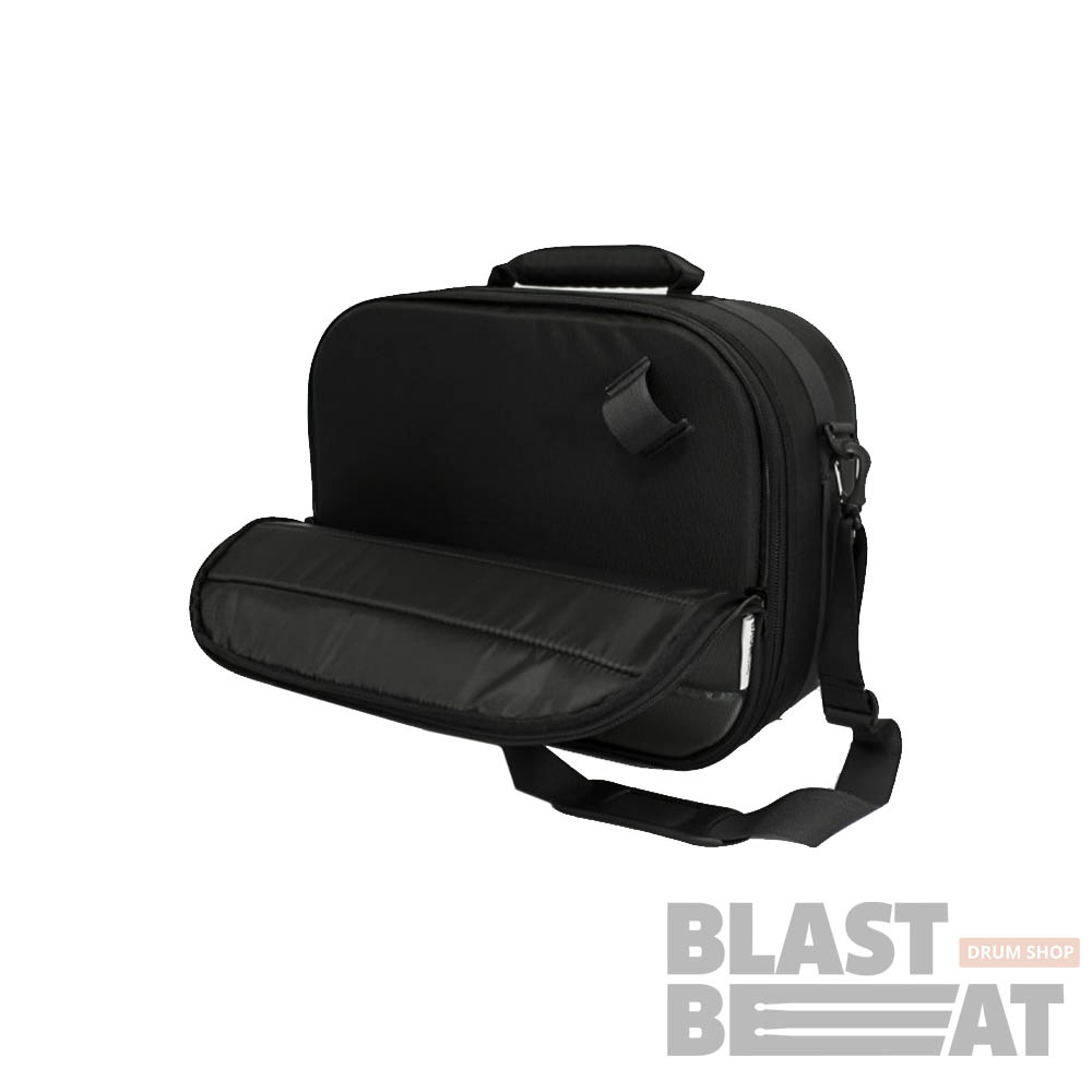 Чехол bm оснащён передним карманом. Карман на молнии и достаточно вместительный. В нем можно хранить ноты, ключ, метроном, палочки, под и т.п. Внутри имеется разделитель. Дно чехла имеет дублирующий слой из водонепроницаемого материала и резиновые протекторы. Утеплитель легко извлекается и чехол можно подвергать ручной и машинной стирки. Регулируемый ремень с плечевой защитой.