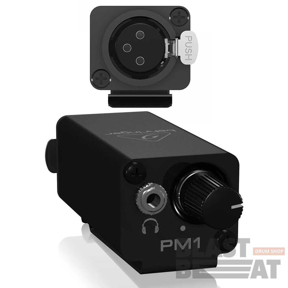 Behringer PM1 оснащен высококачественным регулятором громкости для идеальной регулировки уровня, и отличается длительным сроком службы и сверх-ровной производительностью. Модель имеет входной XLR коннектор, поддерживающий стандартные микрофонные кабели, который оснащен механизмом блокировки, предотвращая от случайных отсоединений. Просто нажмите на фиксатор смонтированный рядом с разъемом для отсоединения кабеля. Важно отметить, что XLR вход не предназначен для приема балансных линейных сигналов, поскольку необходим усиленный источник. Для подключения стерео источника, такого как усилитель для наушников, следует использовать TRS-XLR (папа-папа) кабель.