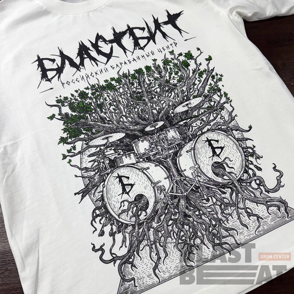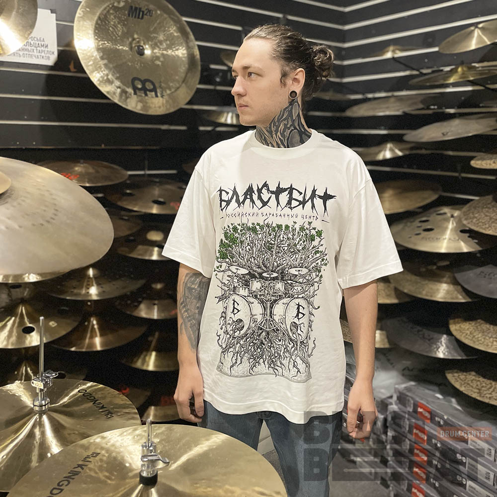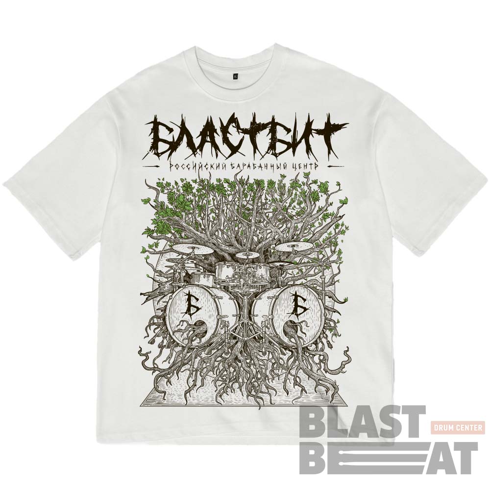 Качественная оверсайз-футболка размера S белого цвета с принтом "Барабанное Древо".