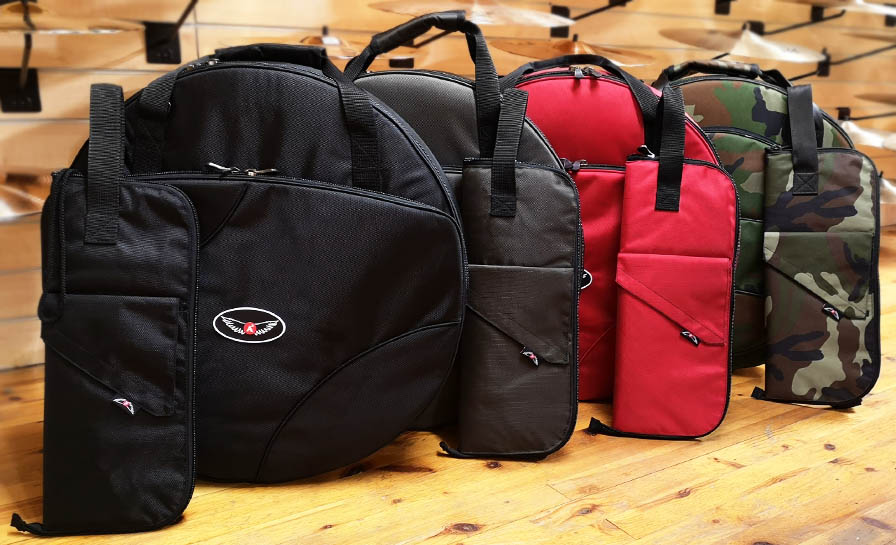 Качественные 20-ти и 22-х дюймовые кофры, а так же надежные и вместительные чехлы для палочек, которые можно вешать на флор-том или стойки в установке.