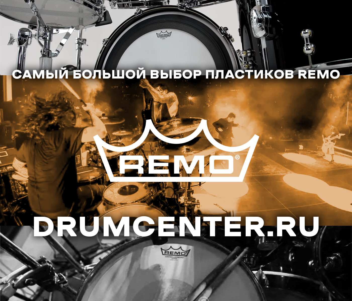 Remo - это выбор многих профессиональных музыкантов, среди которых Трэвис Баркер, Бенни Греб, Чед Смит, Дэйв Векл, Томми Олдридж, Вёрджил Донати, Томас Хааке, Тони Ройстер Мл., и многие другие. Артисты разных жанров и навыков выбирают пластики Remo за их качество, ассортимент и широкий спектр возможностей получить свой собственный идеальный звук!