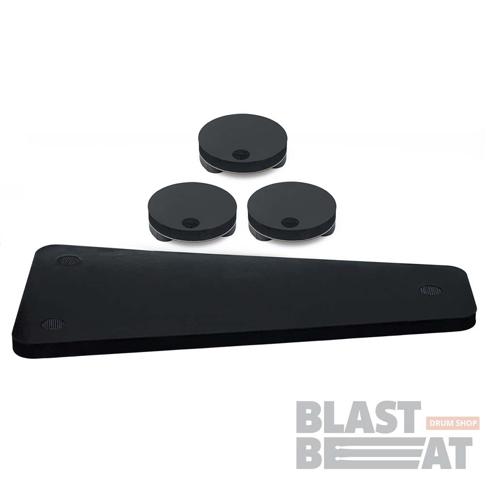 Инновационная система включает специально разработанные круглые подкладки для ножек напольных томов и шипов бас-барабанов (как акустических, так и электронных), а также для педалей хай-хэта.