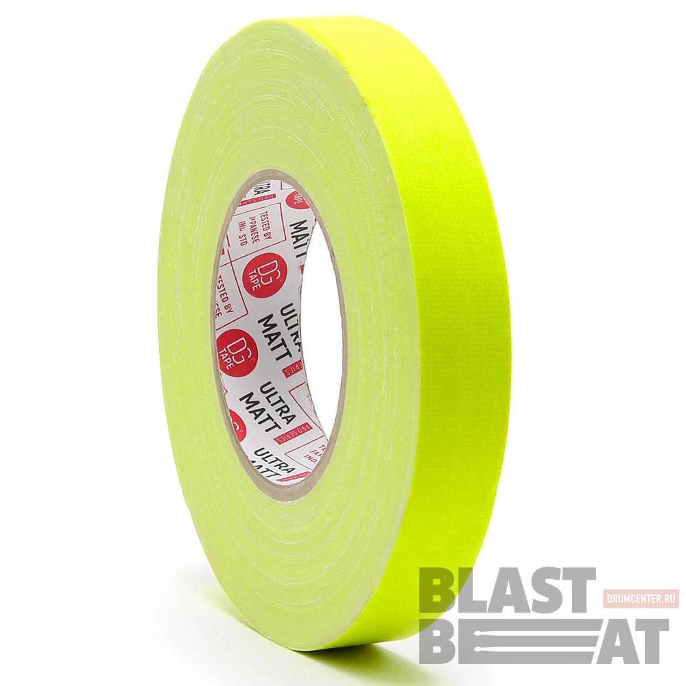 Плотность 76 mesh. Желтая клейкая лента тэйп (тканевый скотч) с эффектом свечения в темноте (ультрафиолете) шириной 25 мм в рулоне 50 метров DG Tape серии Flourescent UltraMatt Flour.