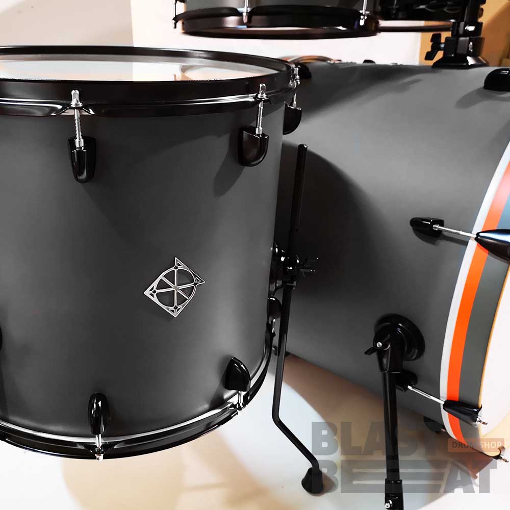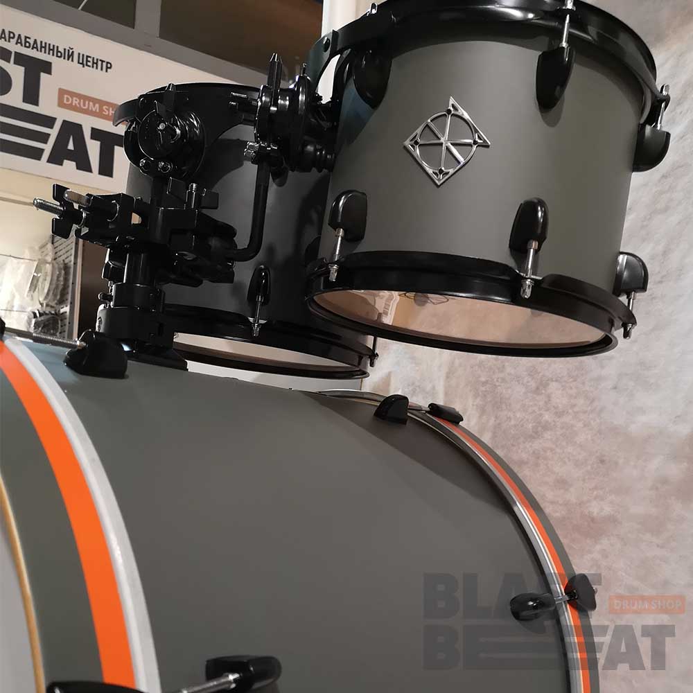 Расцветка называется "Магнит" (MN) - серый матовый оттенок с черной фурнитурой и ободами, и с оранжевыми линиями на ободах бас-барабана.