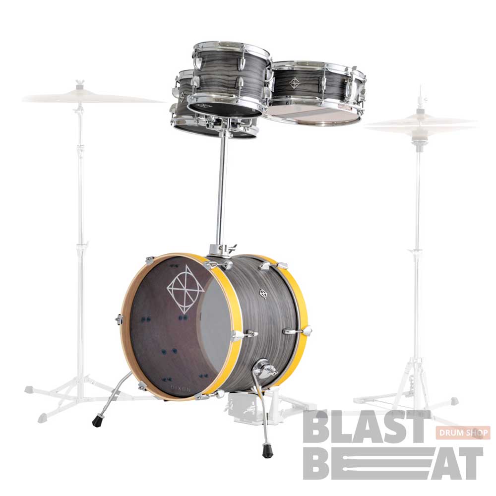 Компактный сет из 5 барабанов ударной установки Dixon серии Jet Set Plus (PODJ516EY). Расцветка называется "Эбони" (Ebony) с желтыми ободами бас-барабана (EY).