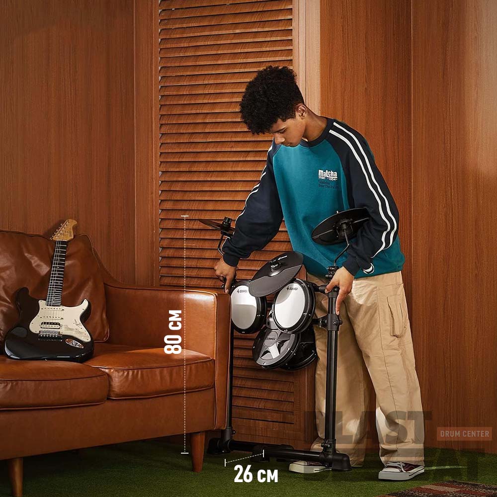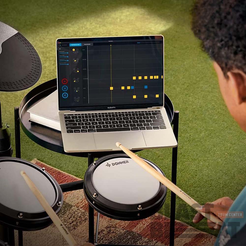 Комплект цифровой ударной установки с сетчатыми пэдами и тихим контроллером бас-барабана DONNER Digital Electronic Drums DED-80: