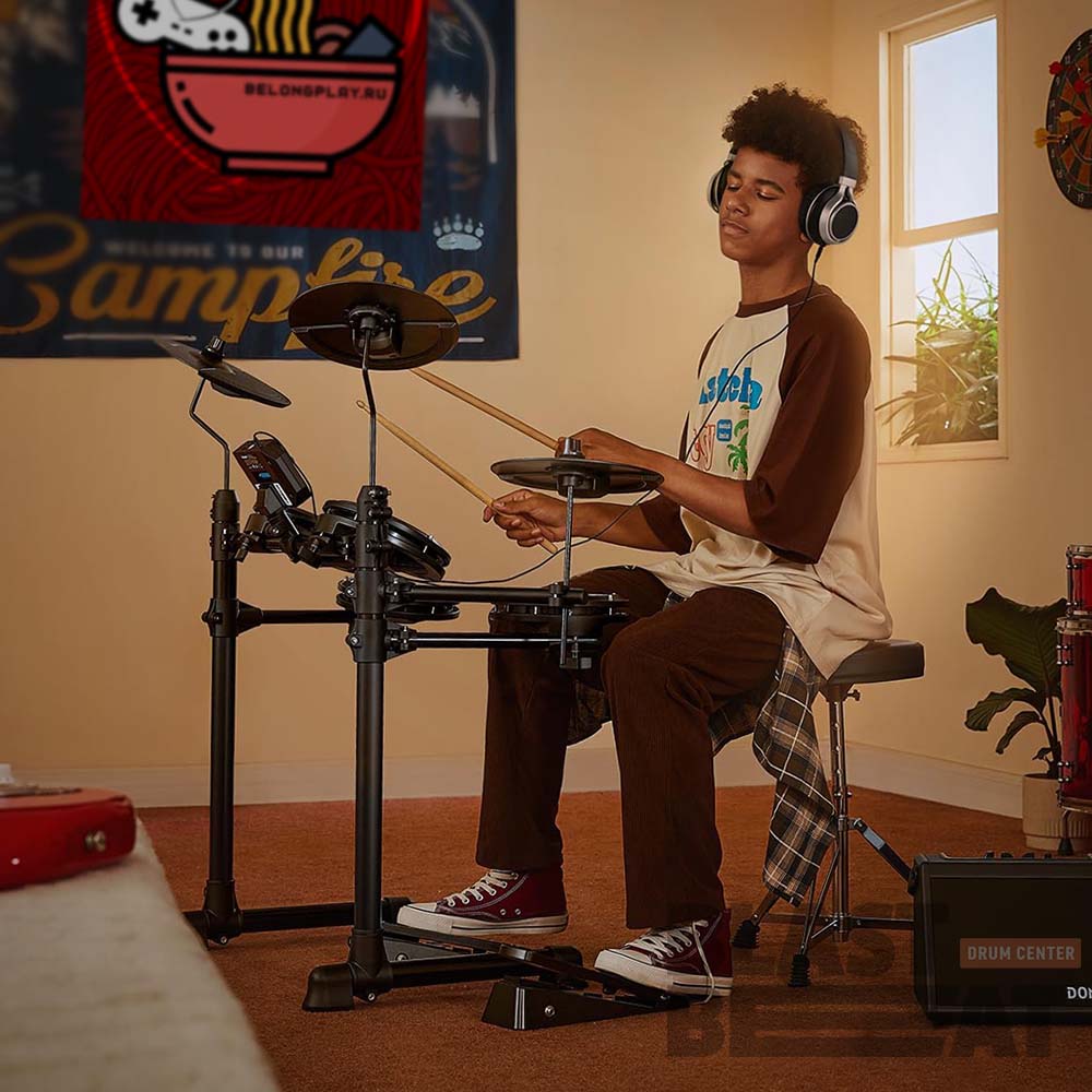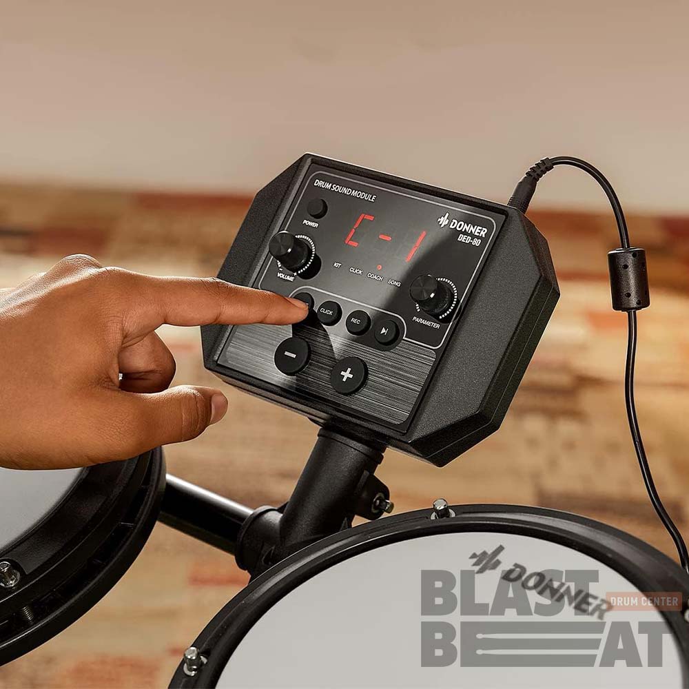 DONNER DED-80 — это электронная ударная установка для начинающих барабанщиков, которая оснащена сетчатыми мембранами пэдов. Она предлагает 180 встроенных звуков, 15 наборов ударных и 30 демонстрационных композиций.