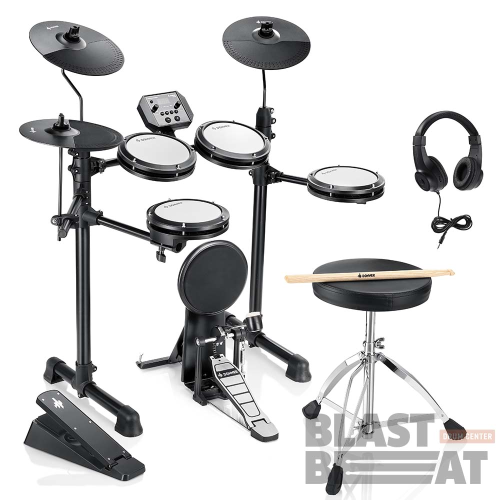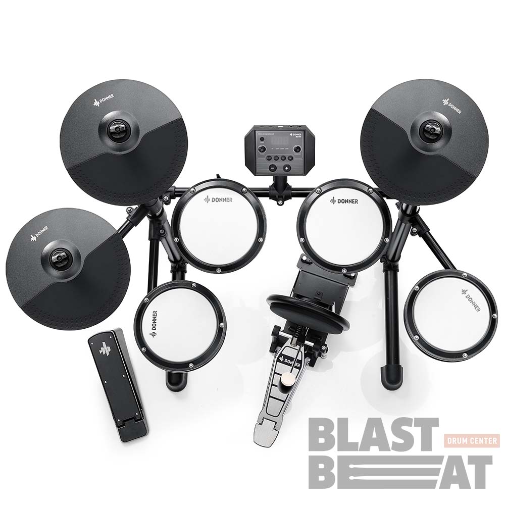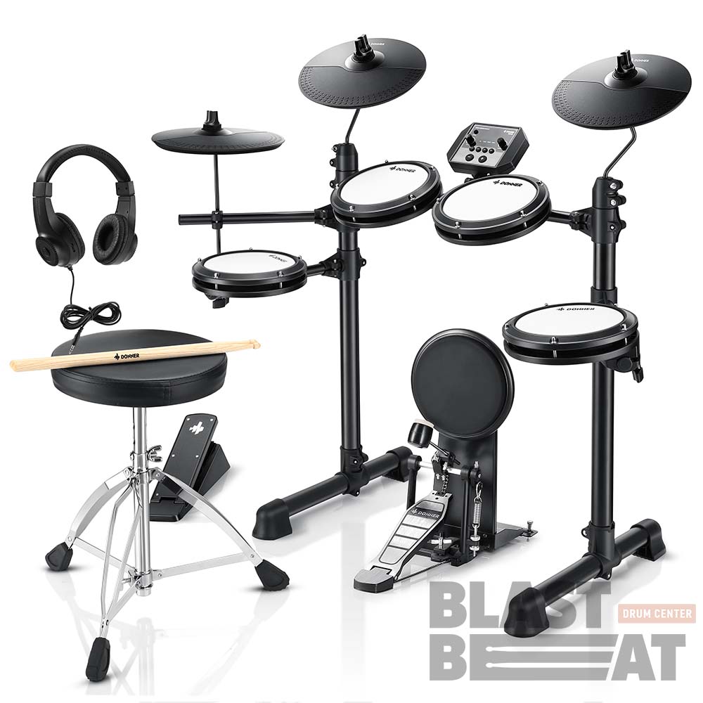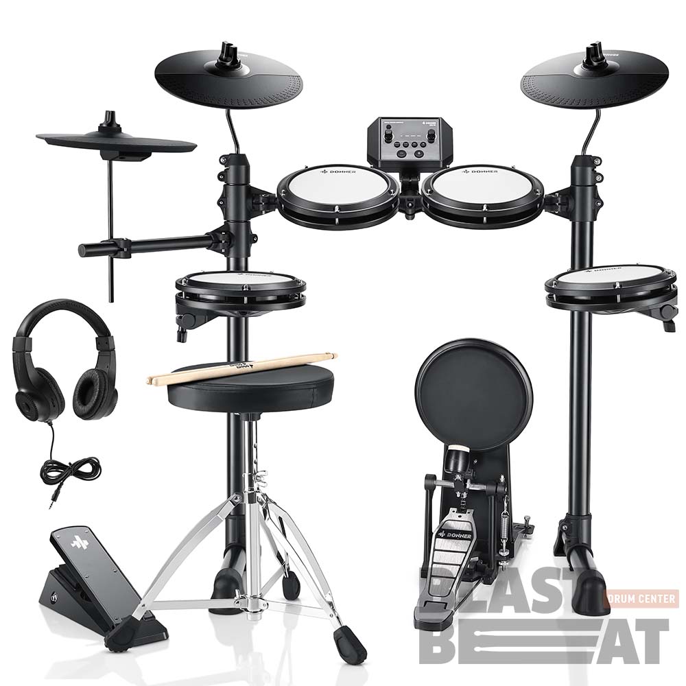 DONNER DED-80P — это электронная ударная установка для начинающих барабанщиков, которая предлагает 180 встроенных звуков, 15 наборов ударных и 30 демонстрационных композиций.