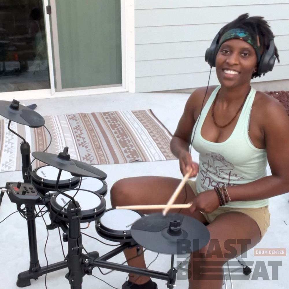 С этой портативной установкой и ее 180 встроенными звуками, 15 наборами ударных и 30 демо-песнями молодые барабанщики могут исследовать все виды музыкальных стилей и наслаждаться профессиональными функциями, такими как 7-дюймовые томы с двойной сеткой, 10-дюймовые однозонные тарелки с креплениями на держателях.