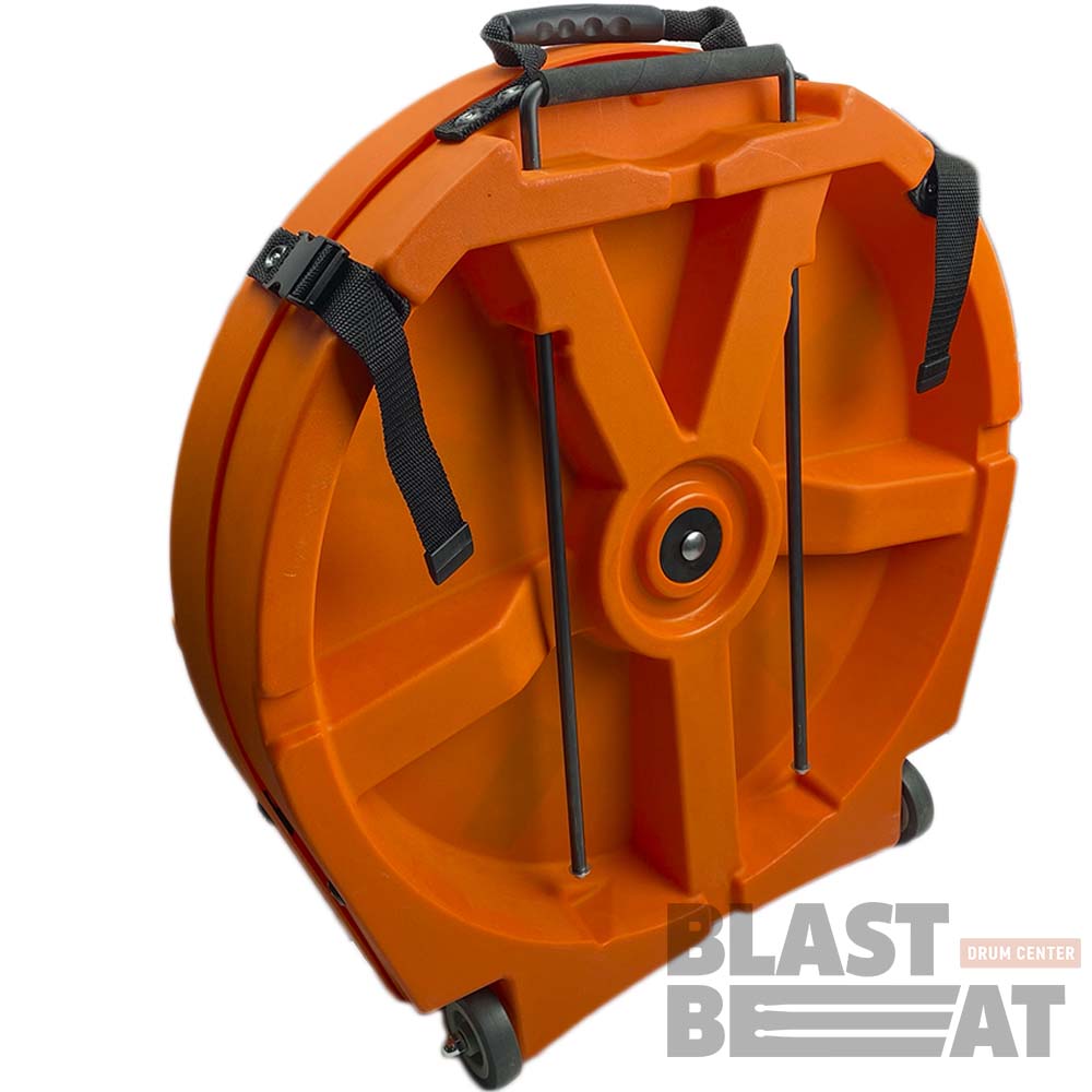 Оранжевый хардкейс 22-дюймового для 9 тарелок цвета на колесиках с выдвижной ручкой.