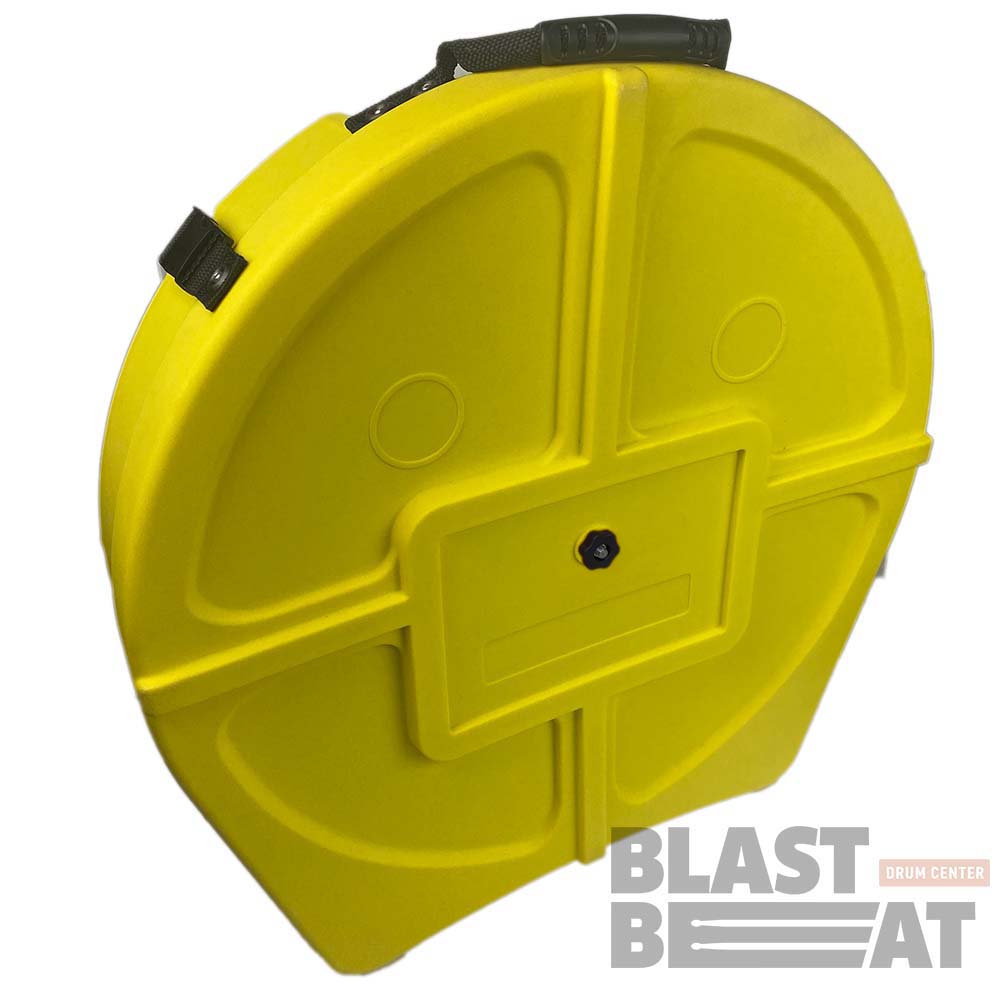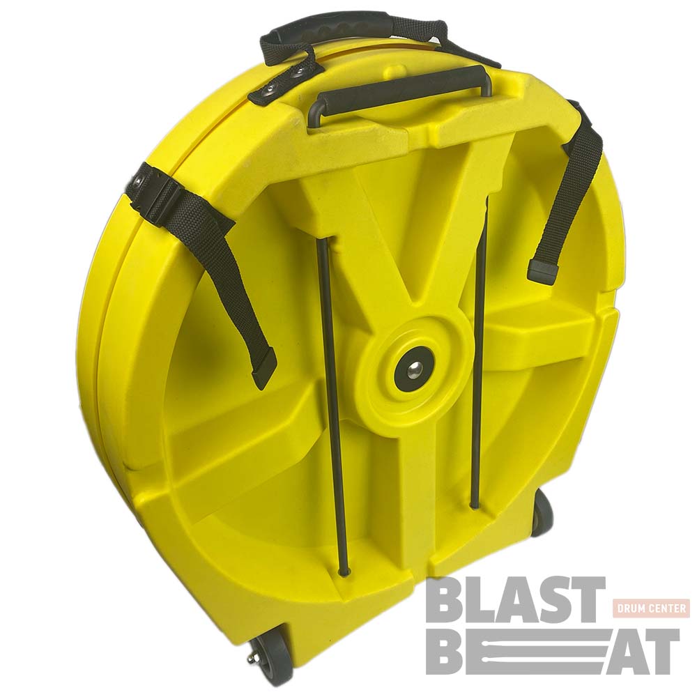 Жёлтый хардкейс 22-дюймового для 9 тарелок цвета на колесиках с выдвижной ручкой.