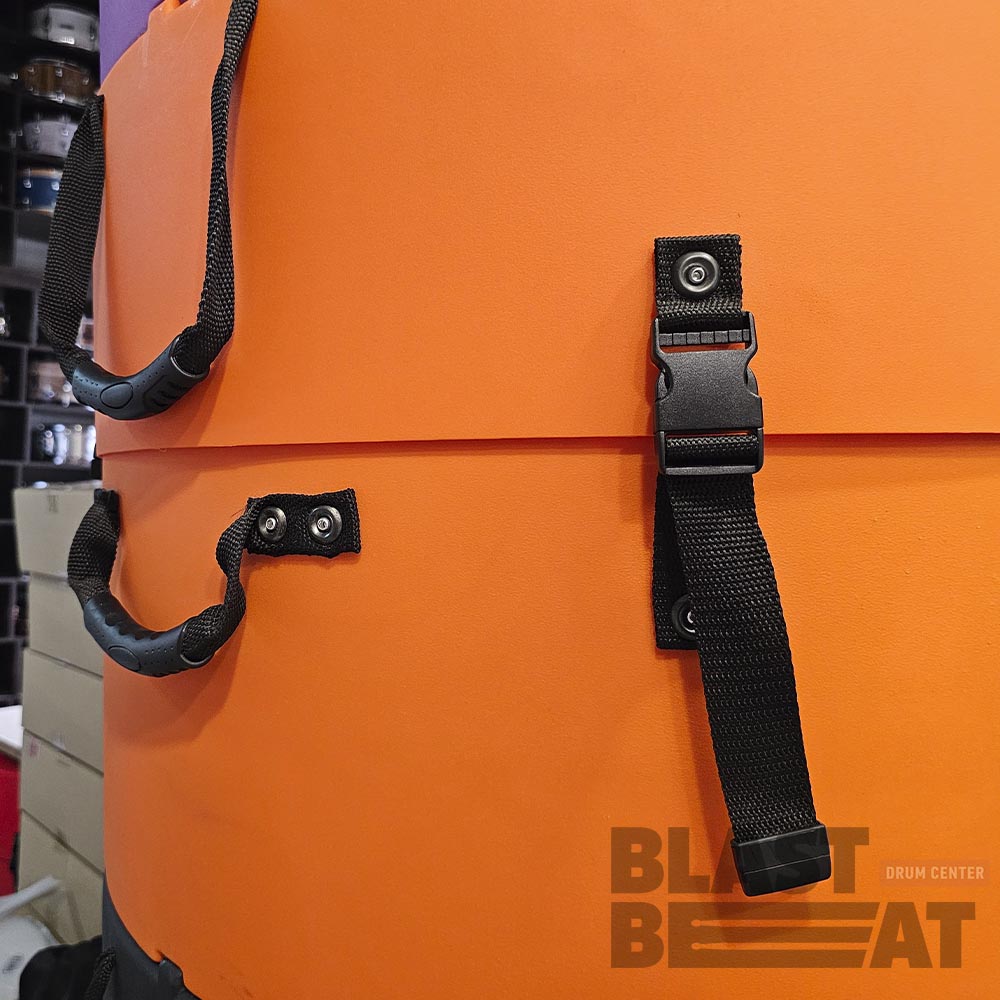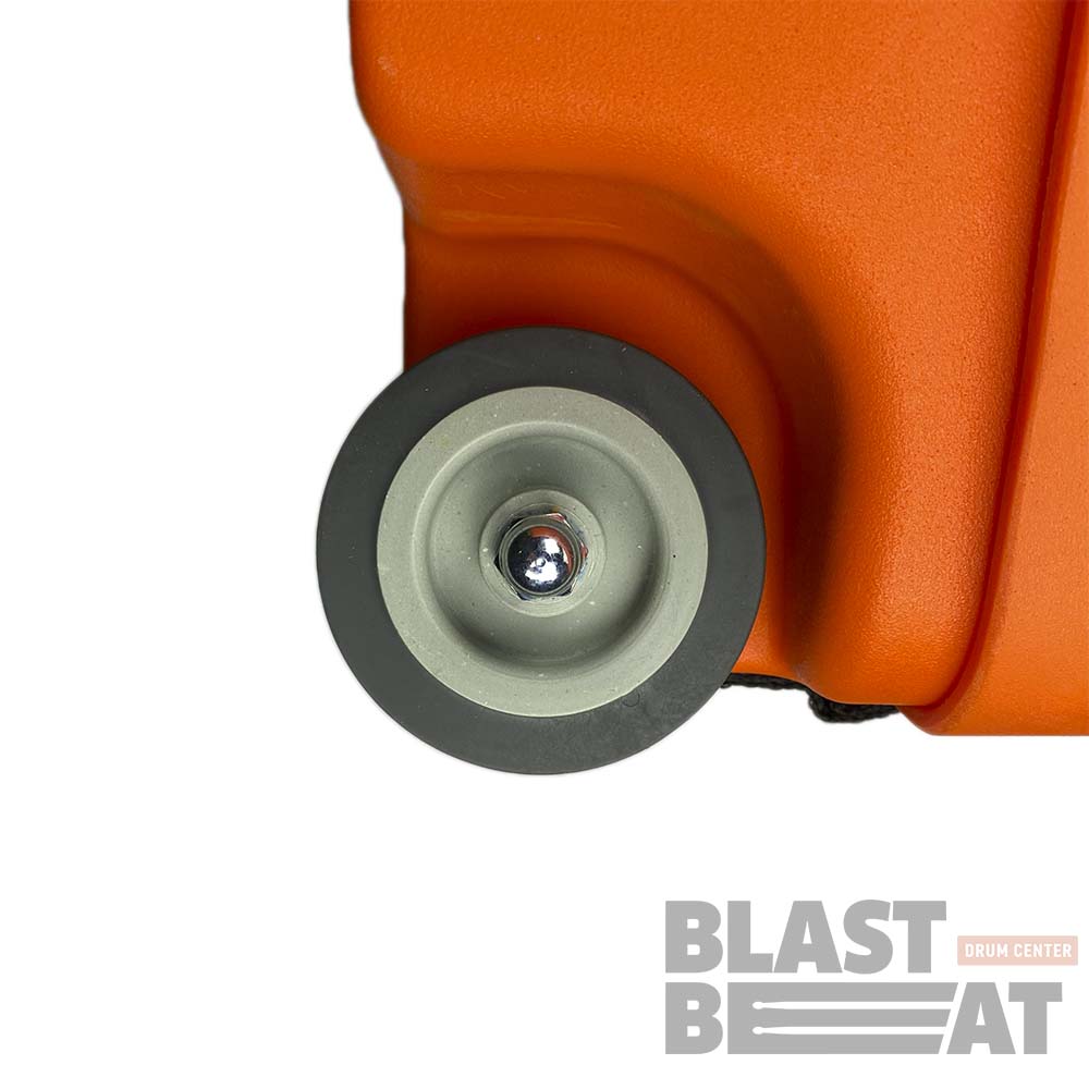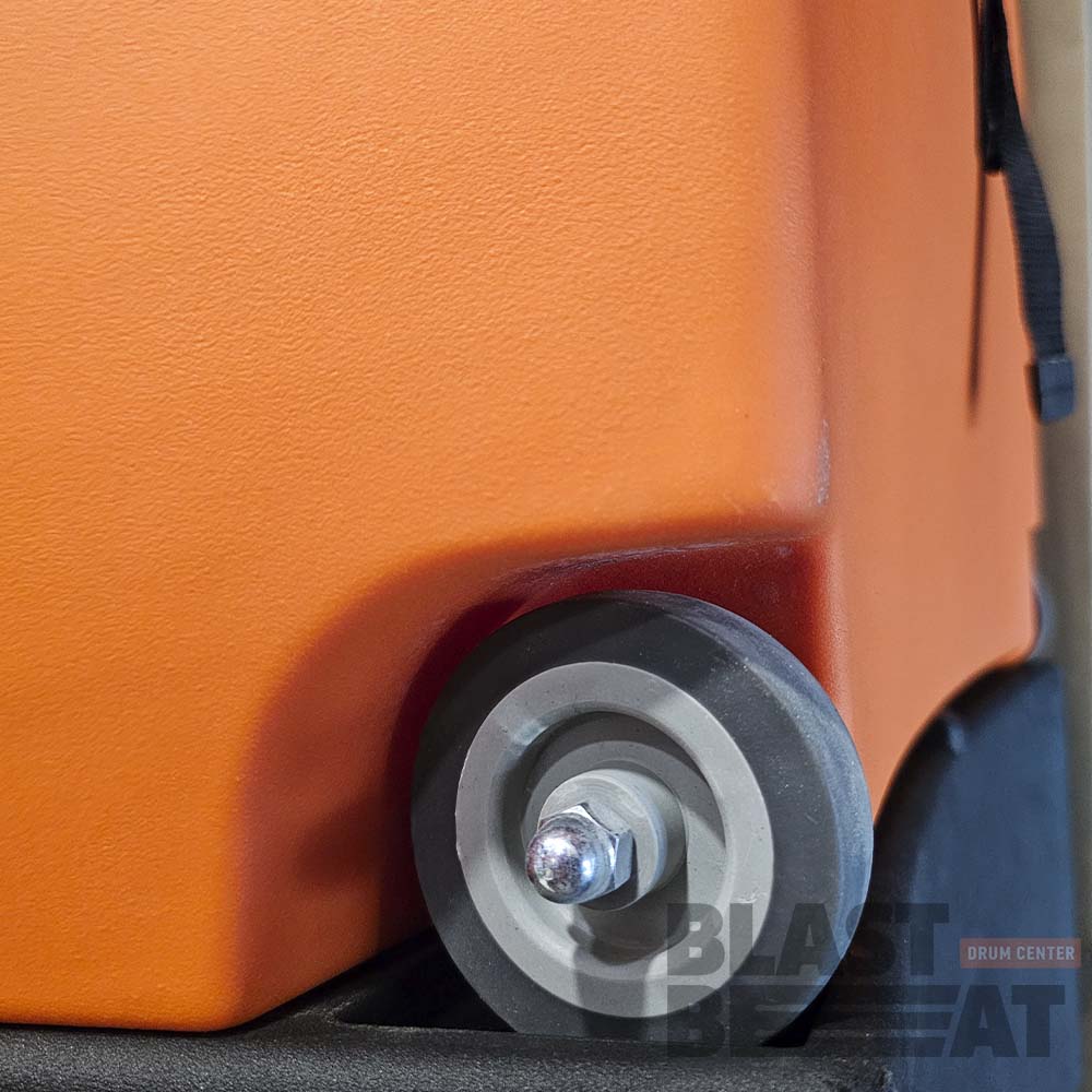 - Большой кейс для барабана имеет надежные роликовые колёса