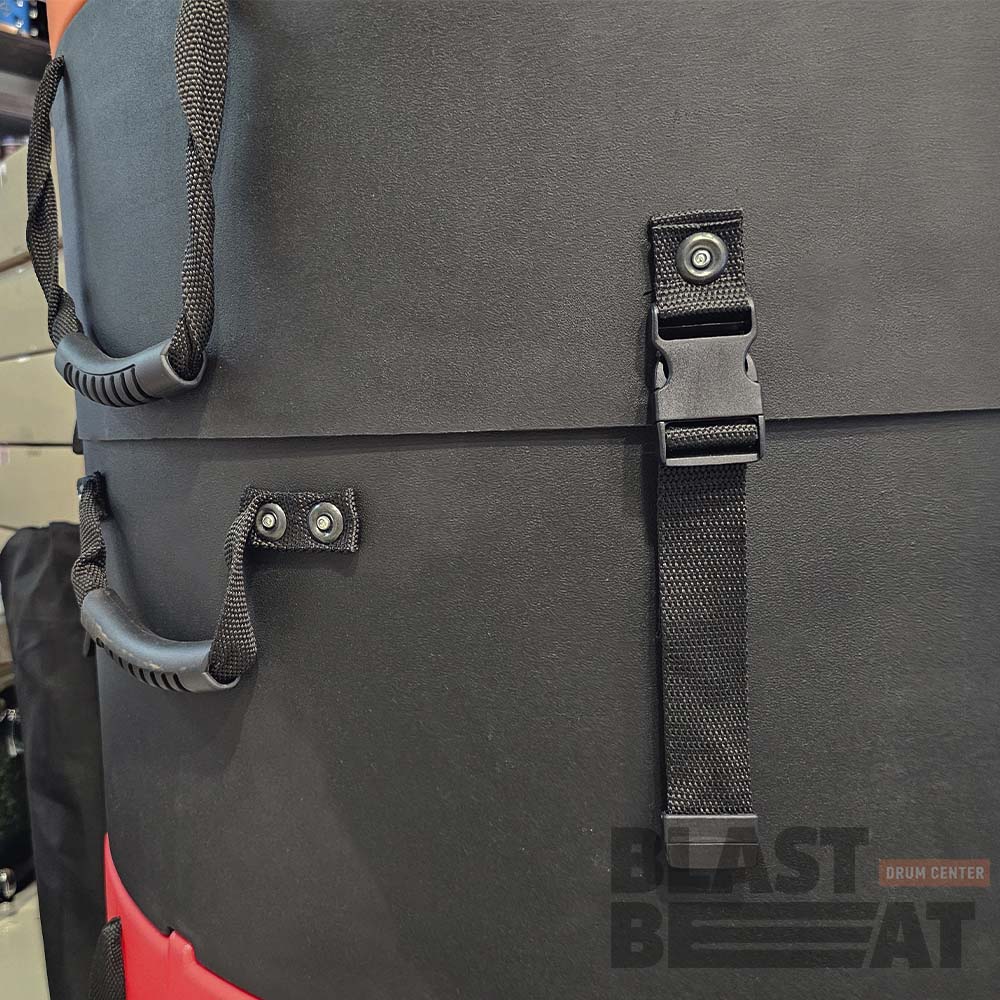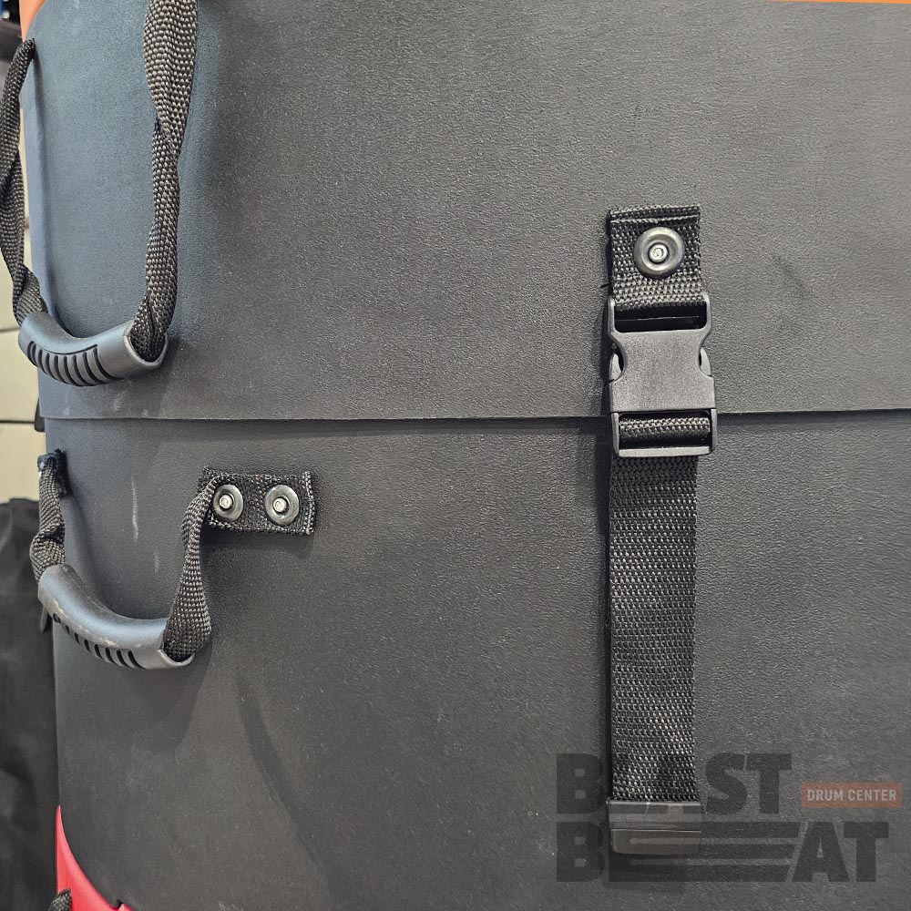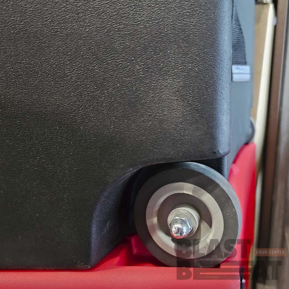 - Большой кейс для барабана имеет надежные роликовые колёса