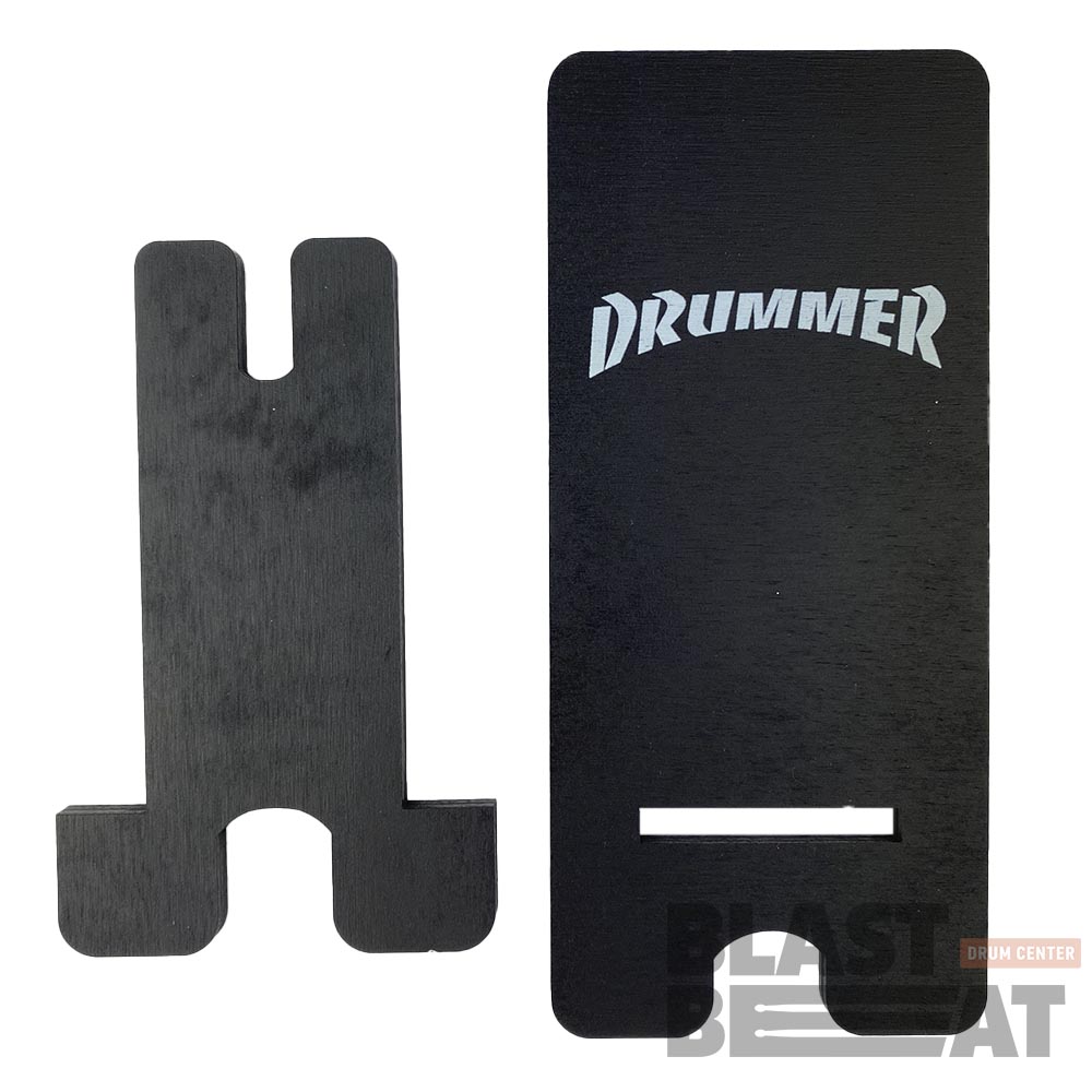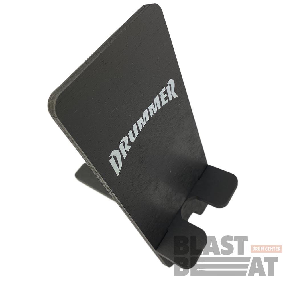 Черная деревянная подставка под смартфон, телефон, планшет c принтом Drummer (Барабанщик)