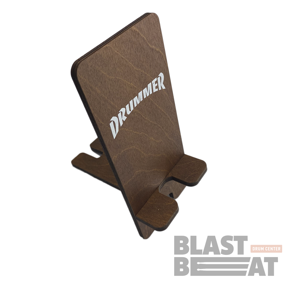 Деревянная подставка под смартфон, телефон, планшет коричневого цвета с принтом Drummer (Барабанщик)