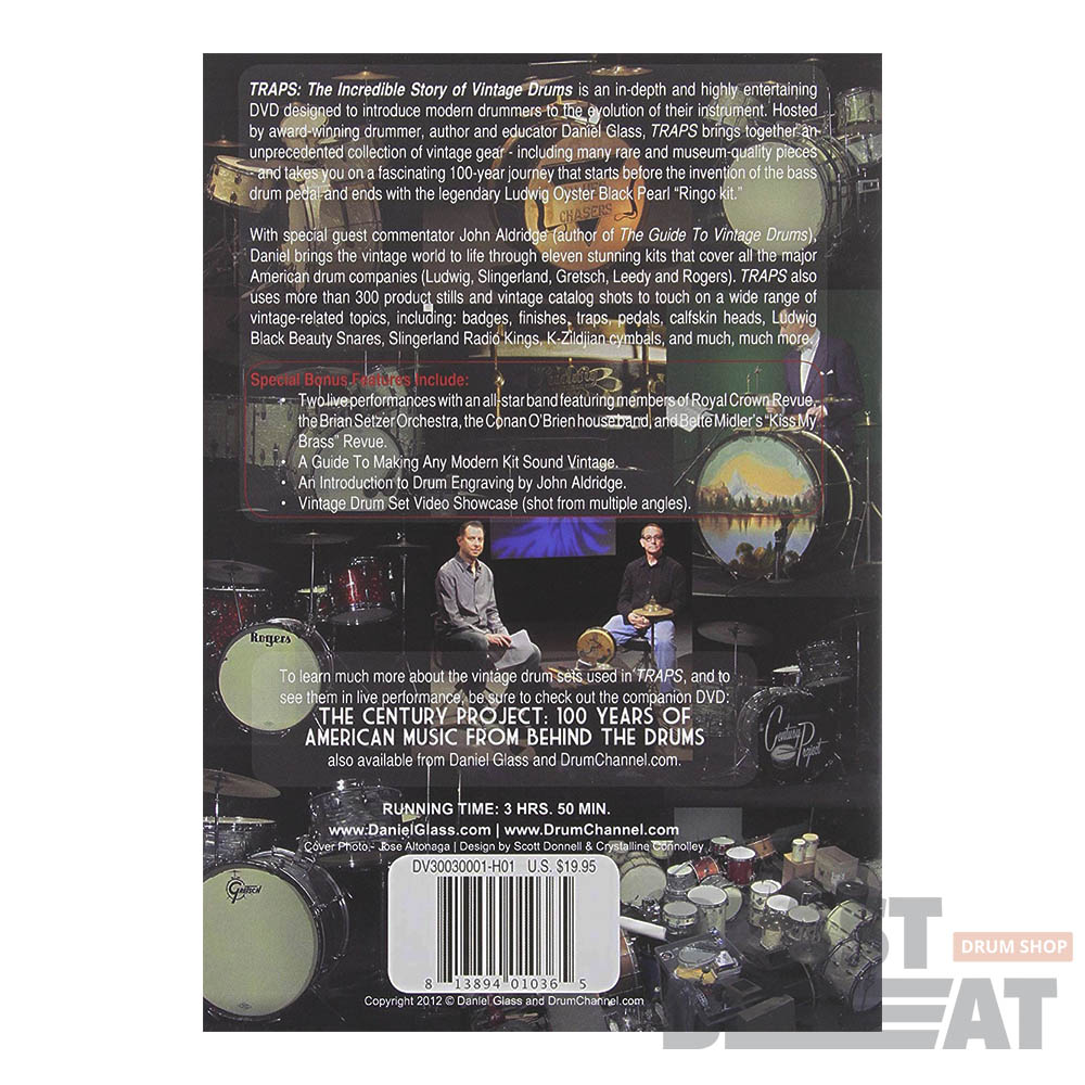 Оригинальный набор DVD "TRAPS: The Incredible Story of Vintage Drums" за авторством Daniel Glass (Даниел Гласс), барабанщиком таких коллективов, как Royal Crown Revue и Brian Setzer Orchestra, востребованным преподавателем и барабанным историком.