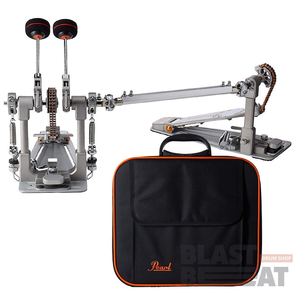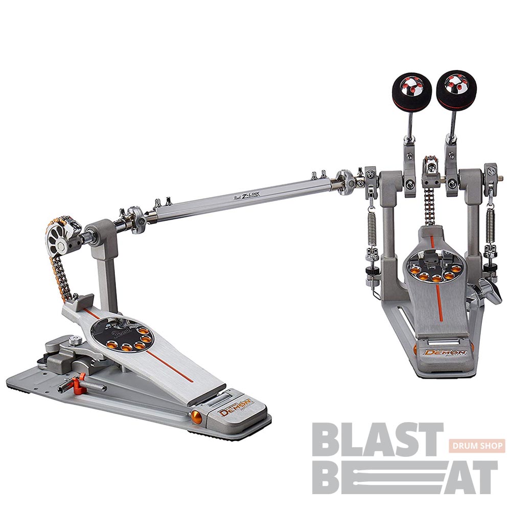 Профессиональная двойная педаль для игры на бас-барабане Pearl Demon P-3002C Demon Drive Chain Double Pedal на цепном приводе, c полужестким фирменным чехлом в комплекте.