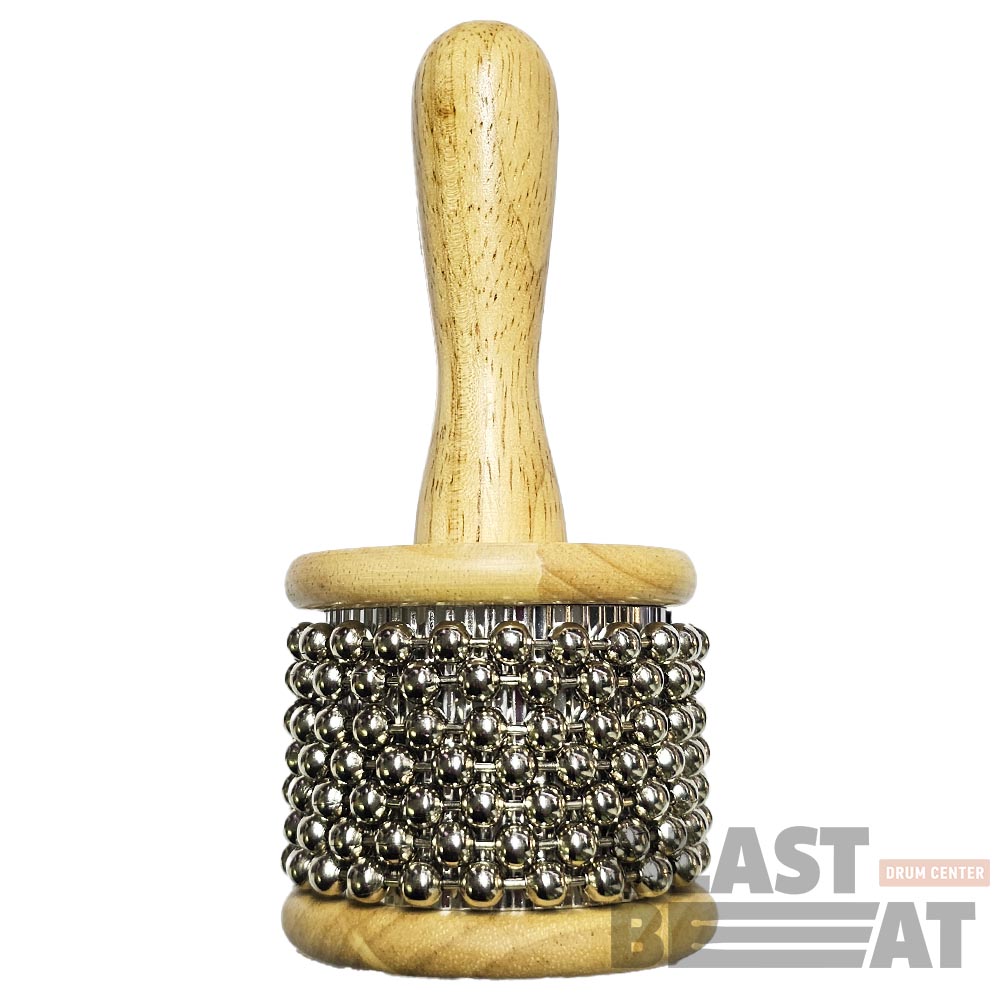 Корпус выполнен из каучукового дерева, а рабочая часть и цепочки — из металла. Такое сочетание материалов обеспечивает чёткий отклик, стабильное звучание и удобство в игре. Mini Cabasa удобно держать в руке, поэтому она хорошо подходит для живых выступлений, студийной работы и домашних занятий.