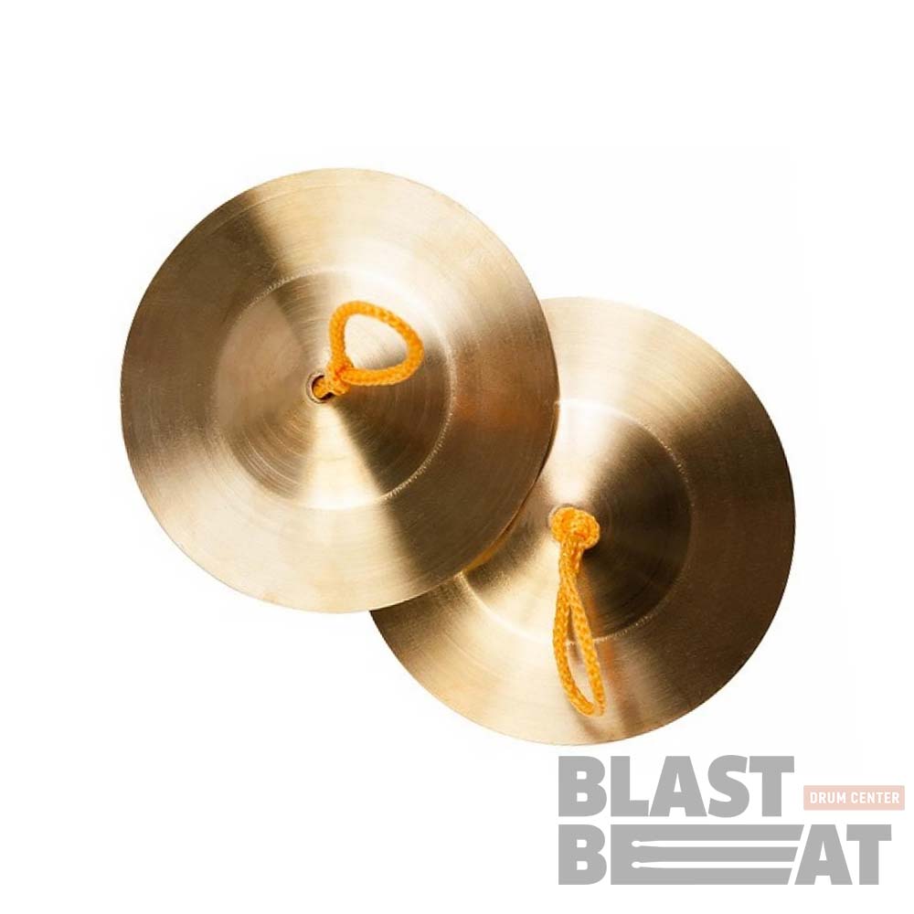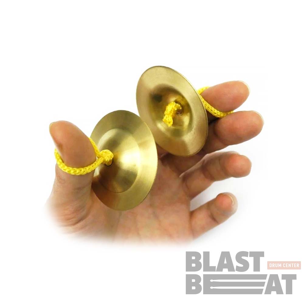 Пара маленьких тарелочек (сагаты) FLIGHT FCMB-5, сделанных из металла, в которых имеется отверстие для крепления петель, надевающихся на большой и средний пальцы руки.