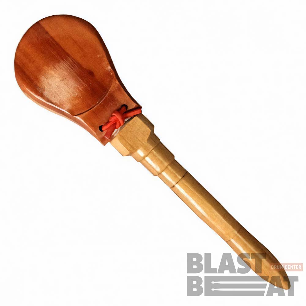 Кастаньета сделана из дерева и имеет две раковины, которые соединены вместе с помощью шнура. У нее также есть длинная ручка, которая позволяет музыканту легко играть на инструменте.