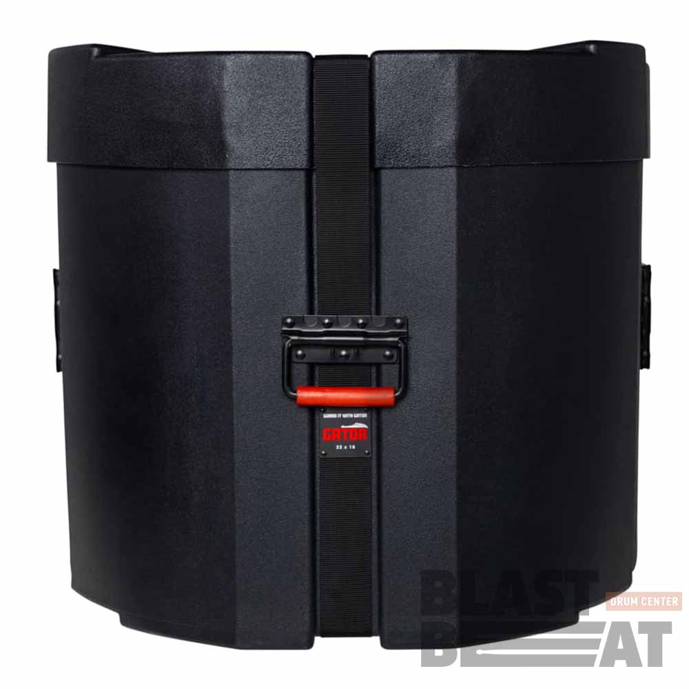 Черный противоударный кейс из литого под давлением материала Gator Grooves с красной подкладкой для бас-барабана 22" x 18".