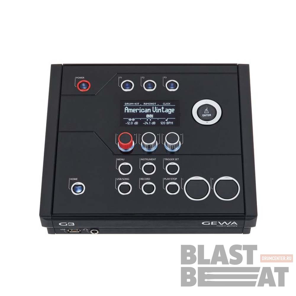 Звуковой модуль Gewa G3 имеет хорошо читаемый дисплей, 10 триггерных входов, в него встроен 901 звук, 40 заводских + 128 пользовательских драмсетов, процессор эффектов, есть функция записи в реальном времени, а также потоковая передача аудио и MIDI по Bluetooth. Внутренняя память рассчитана на 100 WAV-сэмплов и расширяется с помощью USB-флэшки.
