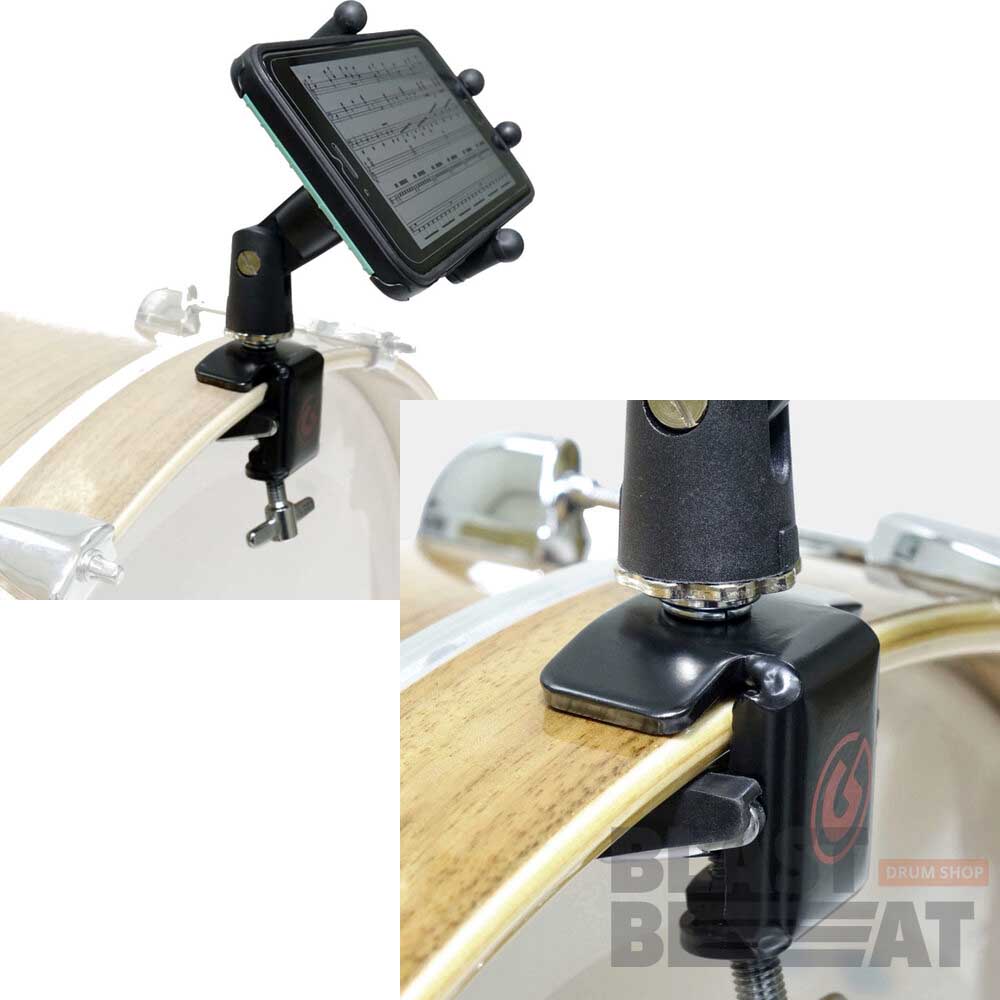 Прикрепите свой мобильный смартфон к ободу для бас-барабана для удобного доступа к сенсорному экрану и незаметного размещения.