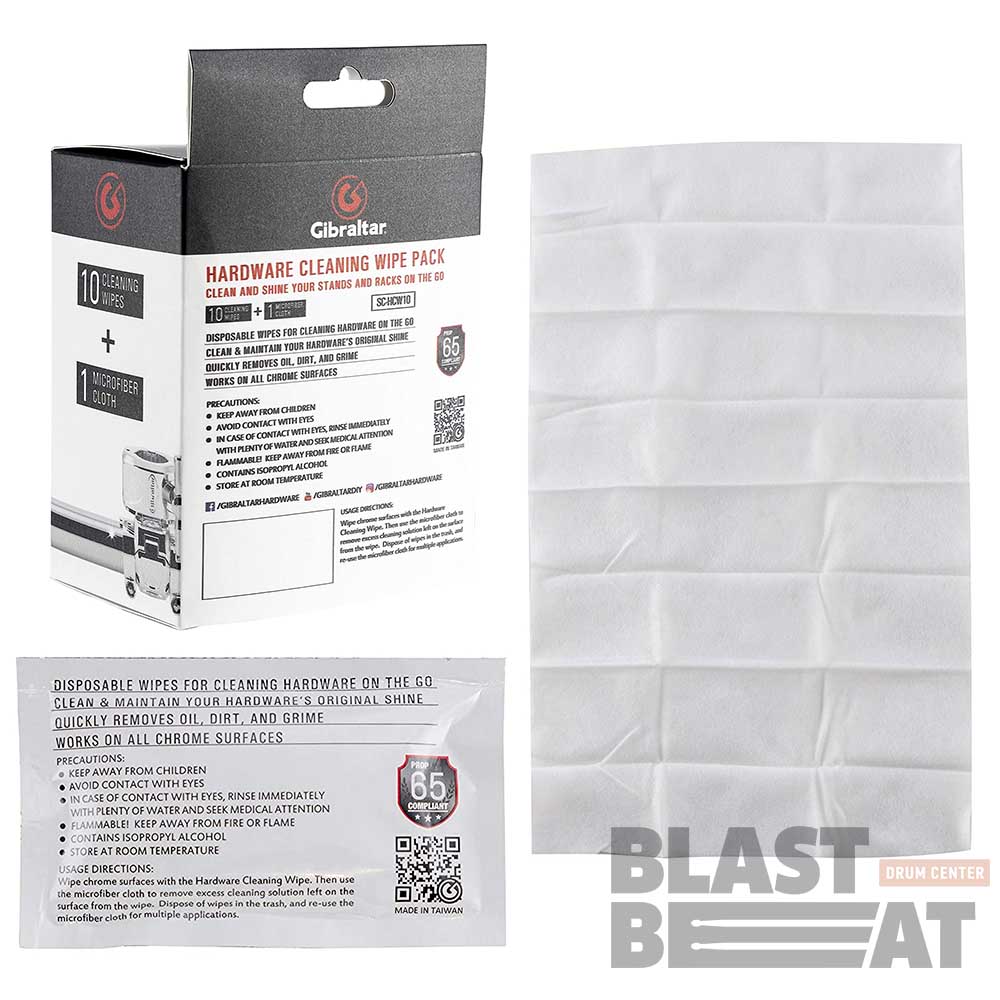Комплект одноразовых салфеток для чистки любых хромированных поверхностей барабанов (ободов, лагов, машинок, кадушек), стоек и хардвера GIBRALTAR GI858250 SC-HCW10.