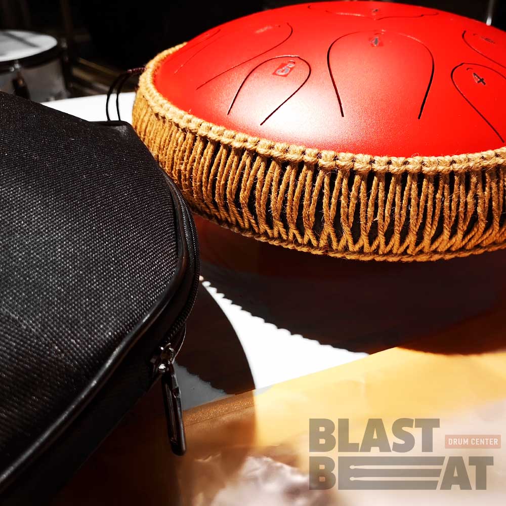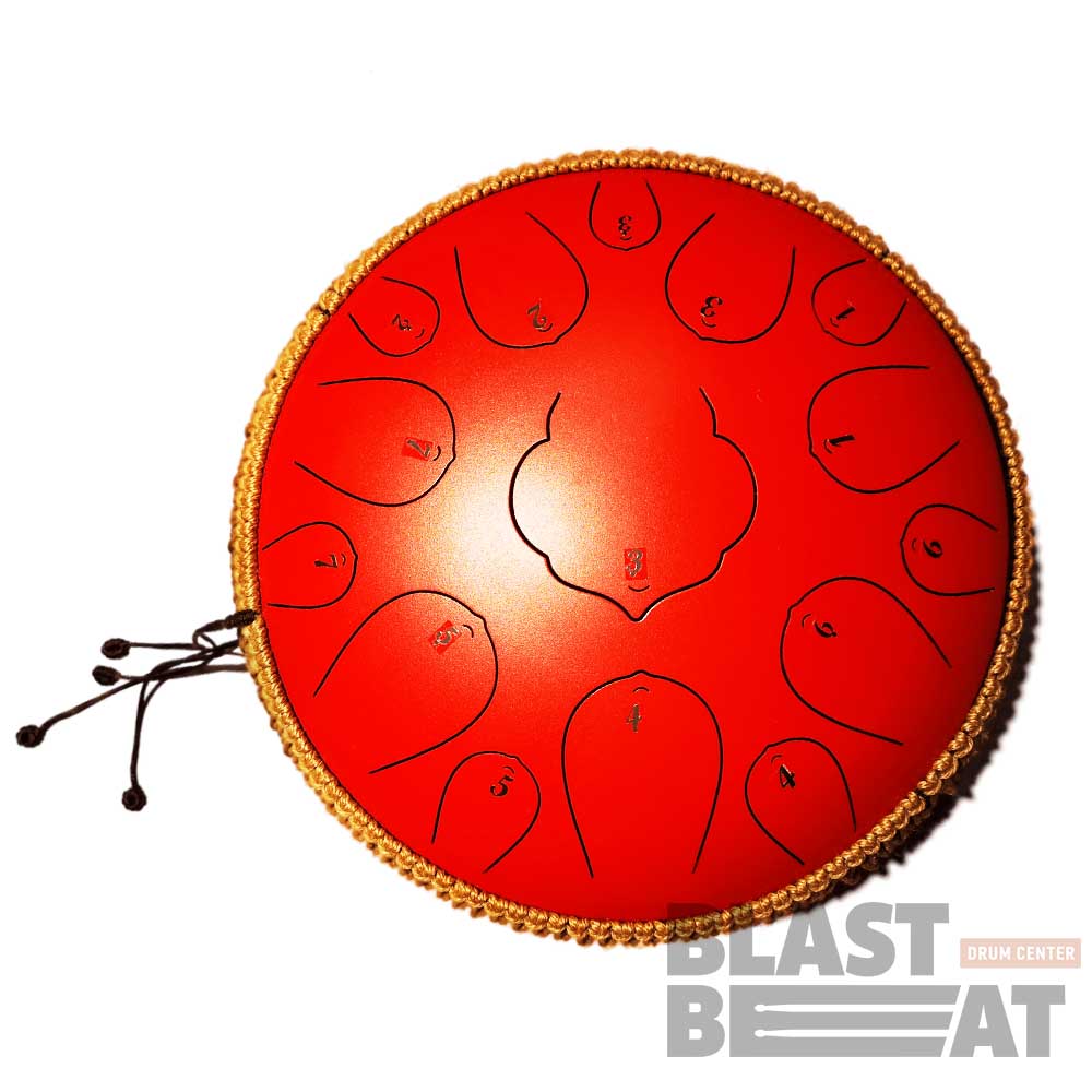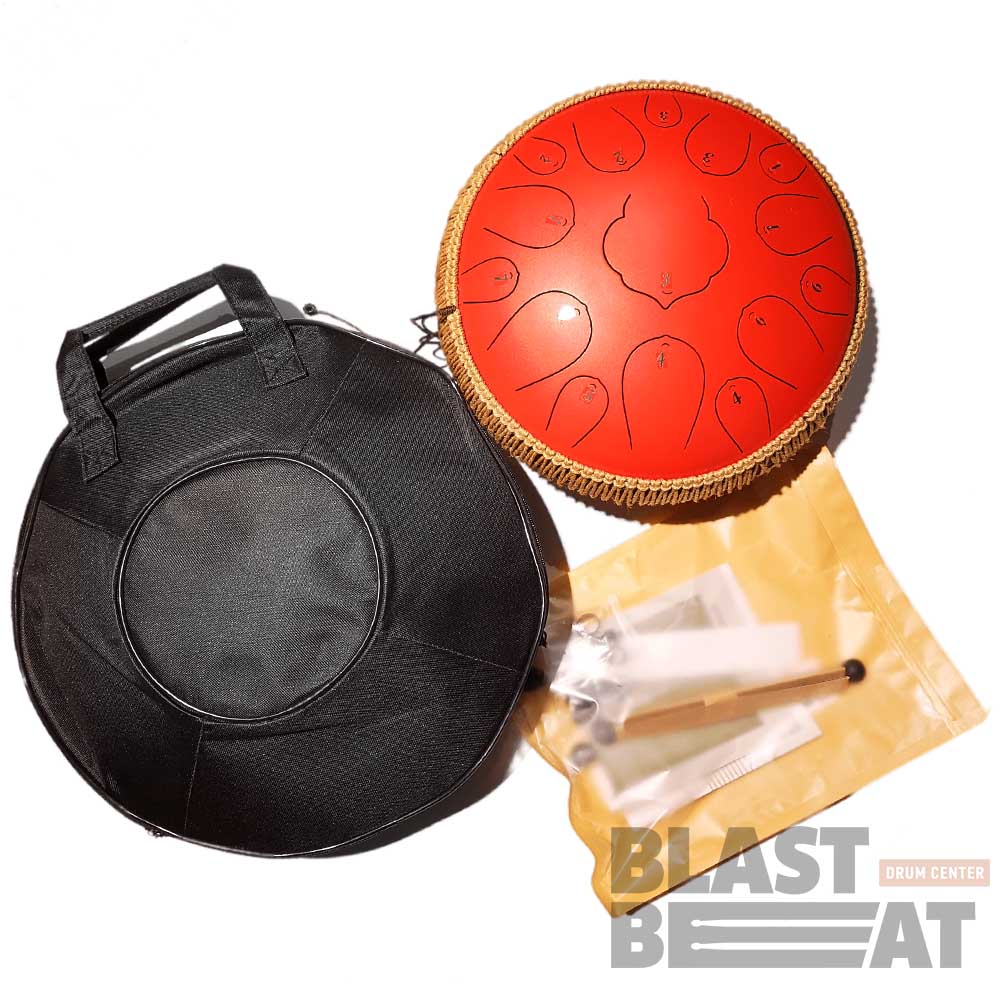 Комплект язычкового барабана (глюкофона) красного цвета на 15 нот диаметром 14 дюймов с оплеткой Drumfan Steel Tongue Drum H-DR-38R.