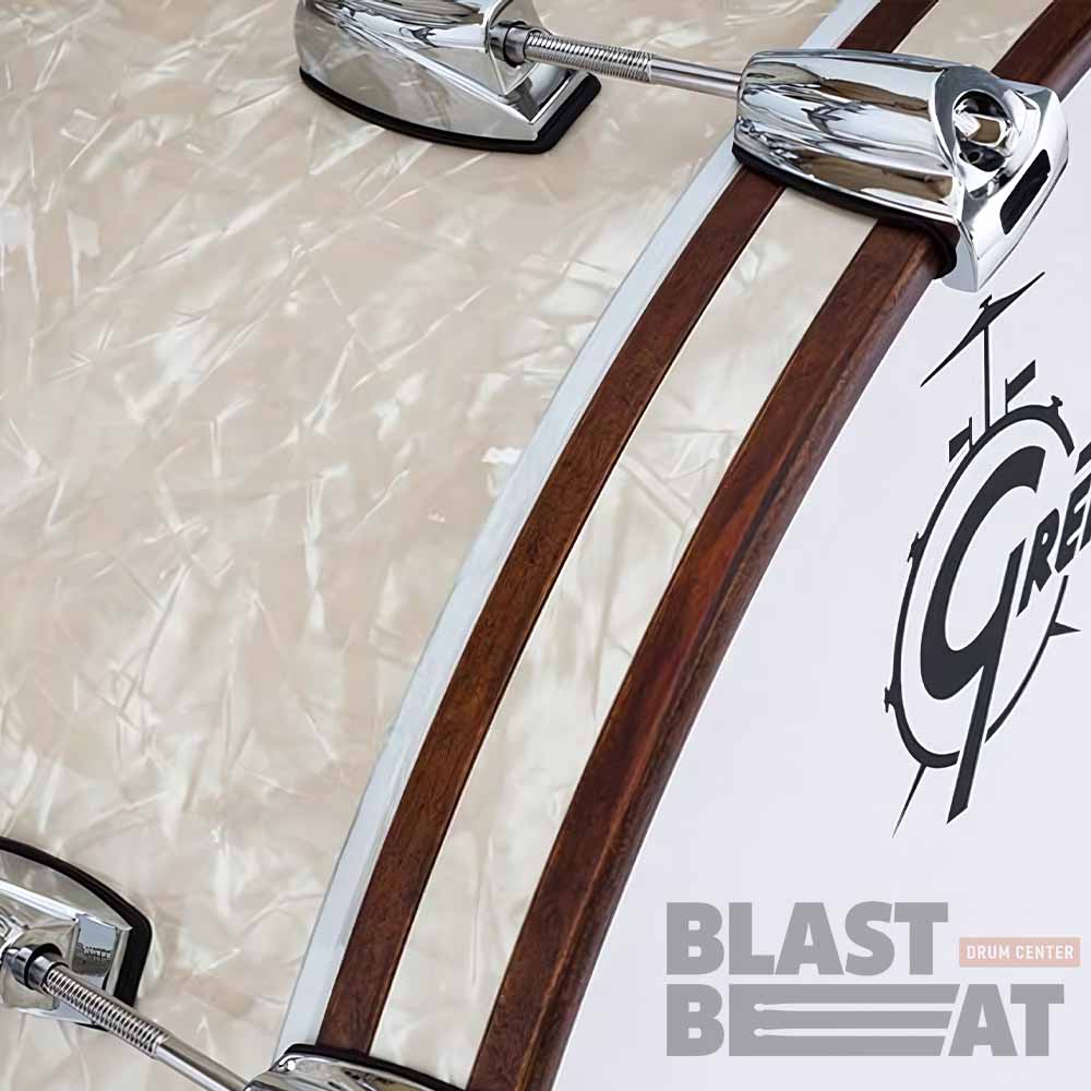Пластики REMO: малый барабан: с покрытием USA Ambassador Batter + Gretsch by Remo Resonant; томы Clear Emperor Batter + Gretsch by Remo Resonant, бочка USA Clear Powerstroke Batter + белый с напылением Gretsch с демпферным кольцом resonant