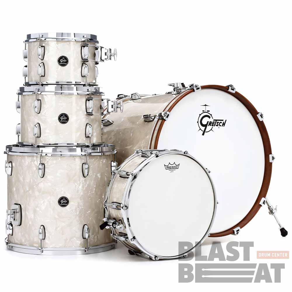 Великолепная профессиональная кленовая установка для студии звукозаписи или для концертов. Комплект из 5 барабанов Gretsch кленовой серии Renown Series RN2-E825-VP в расцветке Vintage Pearl (Винтажный белый жемчуг):