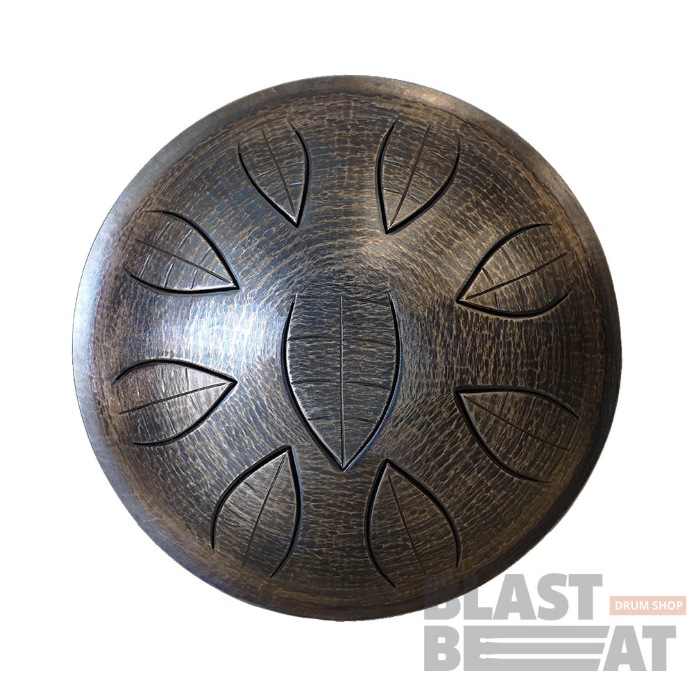 Язычковый барабан (глюкофон) HandPan Overtone из стали, обладающий насыщенным чистым звуком, похожий на звук легкого колокольного звукоизвлечения. Инструмент имеет 8 тональных полей по диаметру с первой нотой по центру.