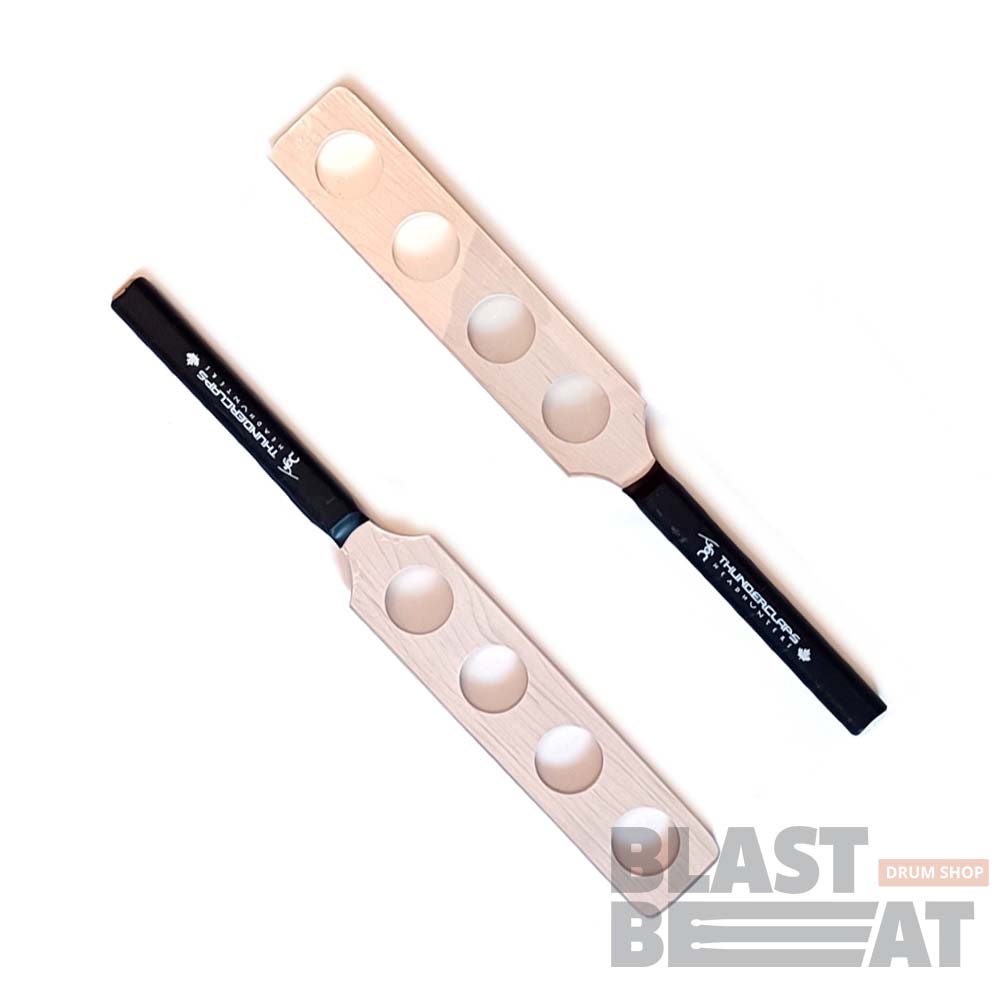 Уникальный перкуссионный инструмент - плоские палочки, состоящие из рукоятки, центральной ударной части с отверстиями и двух лепестков, создающих эффект "хлопок" при игре Headhunters Thunderclaps.