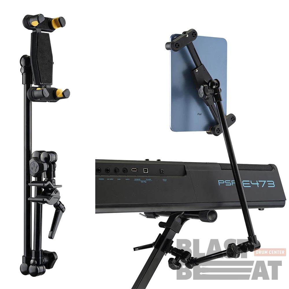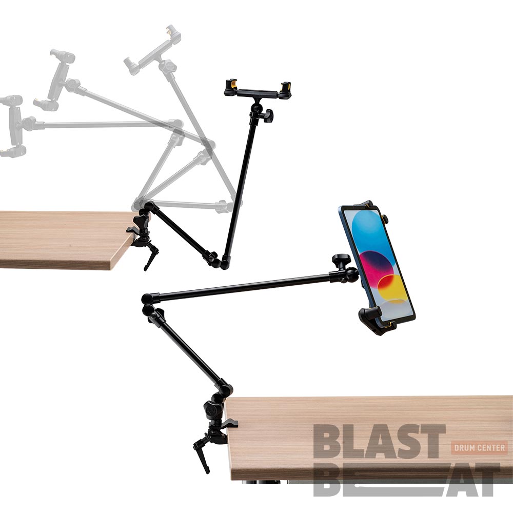 Премиальный держатель для планшетов или крупных смартфонов 7–12.9" (ширина 180–295 мм), с креплением на стойки любого диаметра (до 50 мм). Разработан для профессионалов: барабанщиков, гитаристов, диджеев и клавишников — фиксирует планшет на микрофонных, перкуссионных или инструментальных стойках.