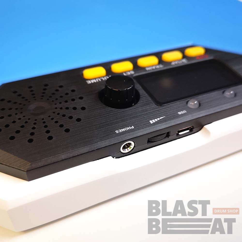 - Метроном заряжается от Micro-USB и держит заряд до 8 часов работы на максимальной громкости
