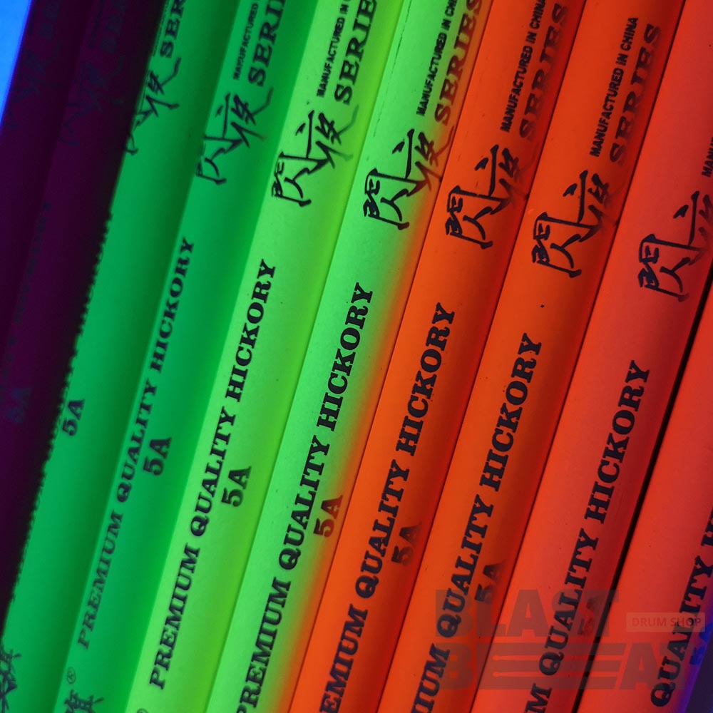 Светящиеся в ультрафиолете оранжевые барабанные палочки HUN Drumsticks размера 5B по бюджетной цене.
