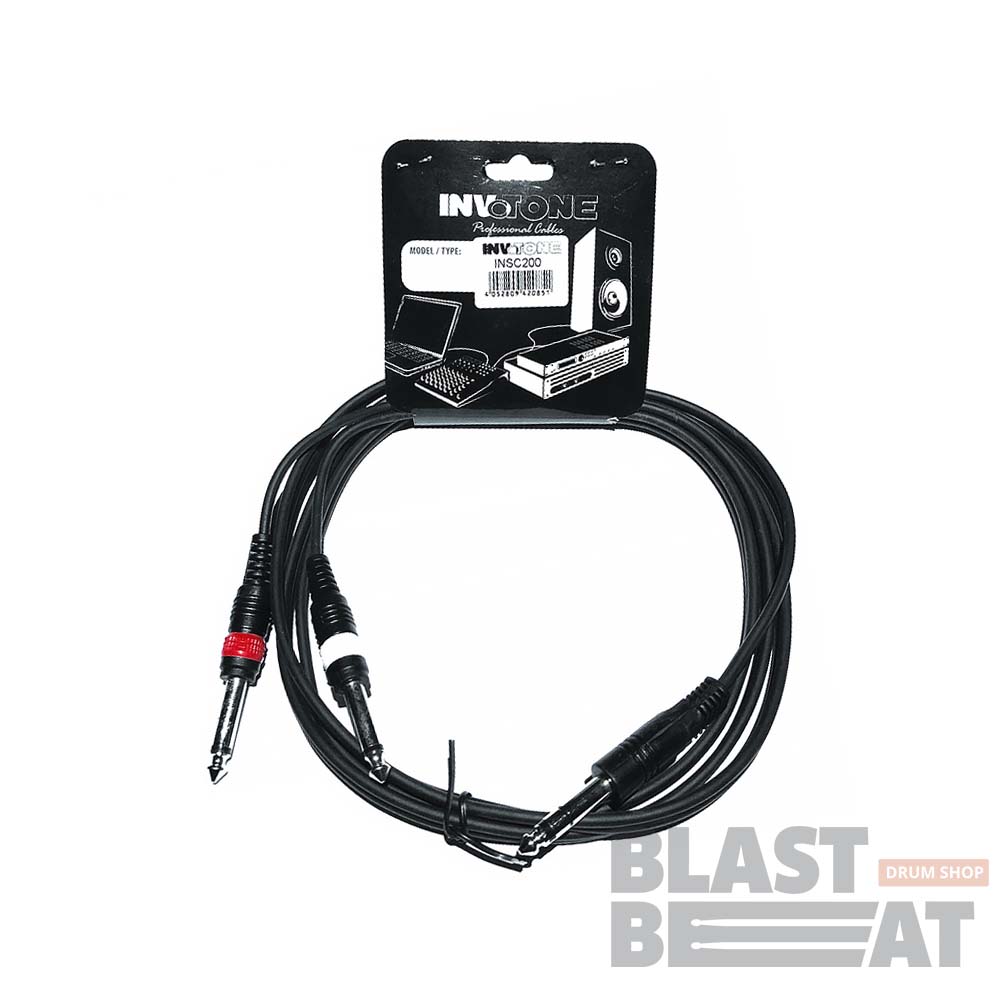 2-метровый аудио кабель Invotone INSC200 с двумя моно-джеками 6.3 мм на стерео-джек 6.3 мм от бренда Invotone.