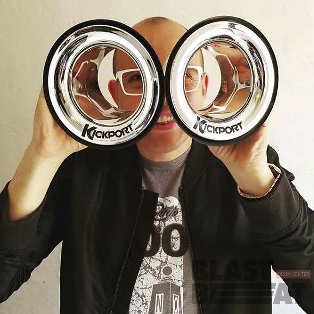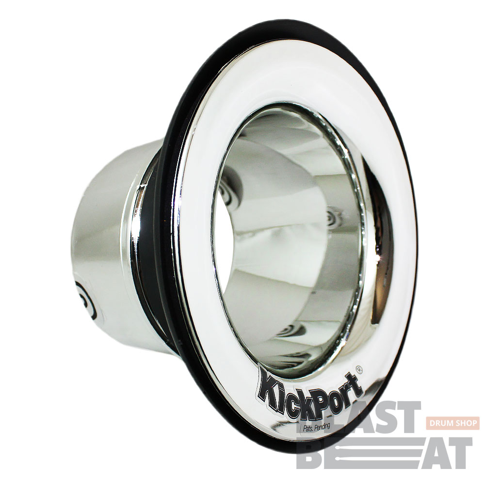 Уникальное устройство для улучшения звука бас-барабанаа - фазоинвертор KickPort Sub-Booster (Кикпорт Саб-Бустер). Инструмент хромированного цвета крепится в отверстие 5 дюймов во внешнем резонаторном пластике бас-барабана.