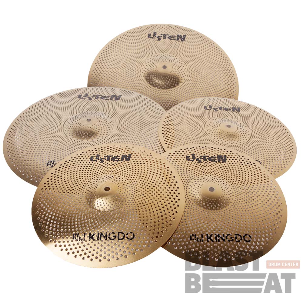Набор из 4-х сетчатых бесшумных тарелок Kingdo золотистого цвета серии Listen (Low Volume Cymbals, сниженной громкости) для тихих выступлений, репетиций или съёмок
