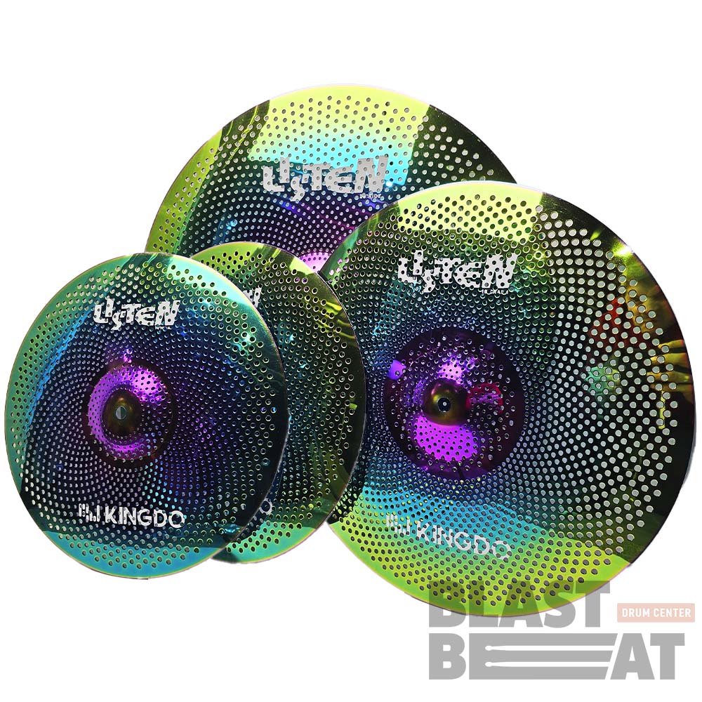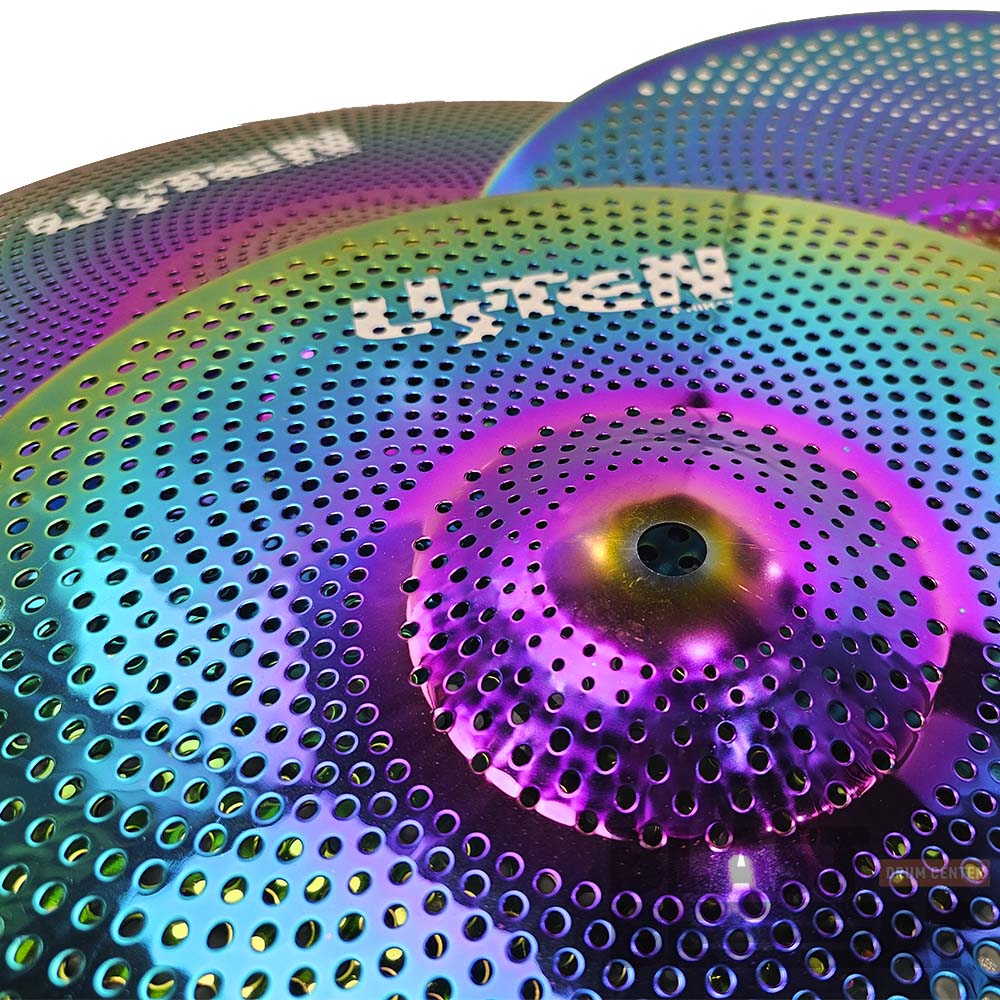 Набор из 3-х сетчатых бесшумных тарелок Kingdo радужного (градиентного) цвета серии Listen (Low Volume Cymbals, сниженной громкости) для тихих выступлений, репетиций или съёмок